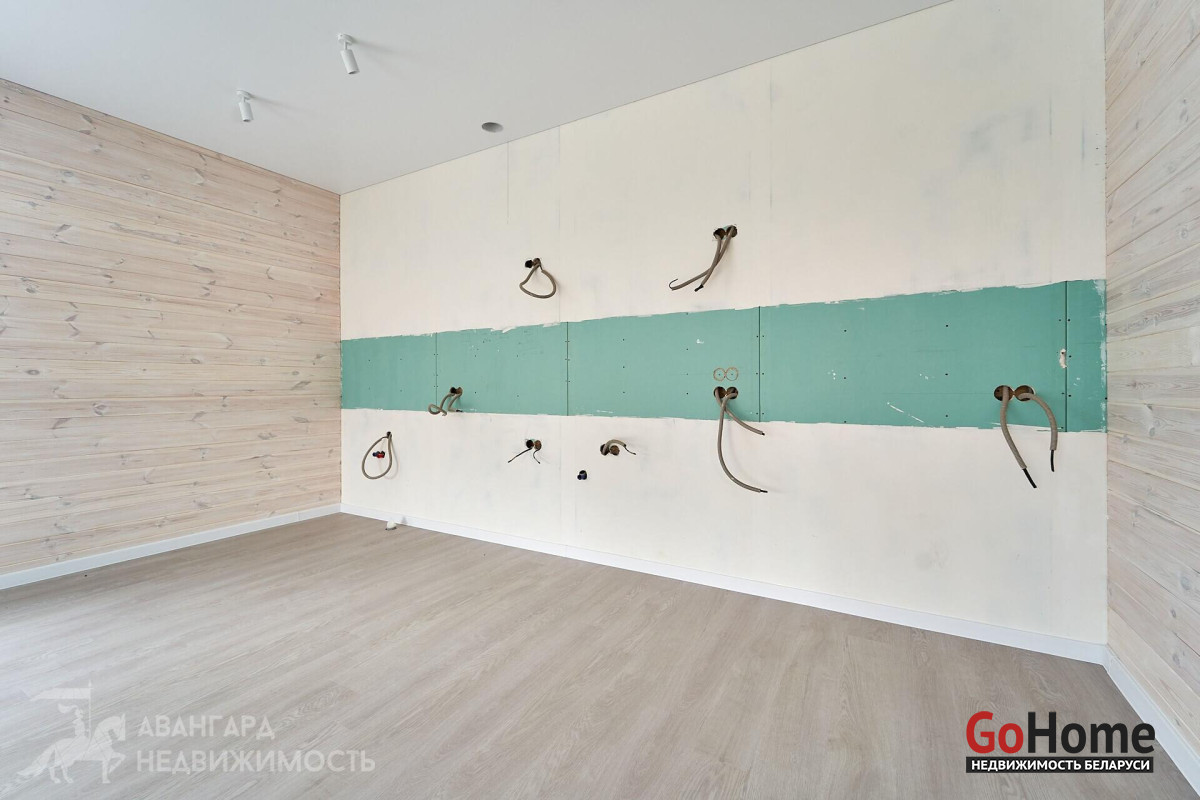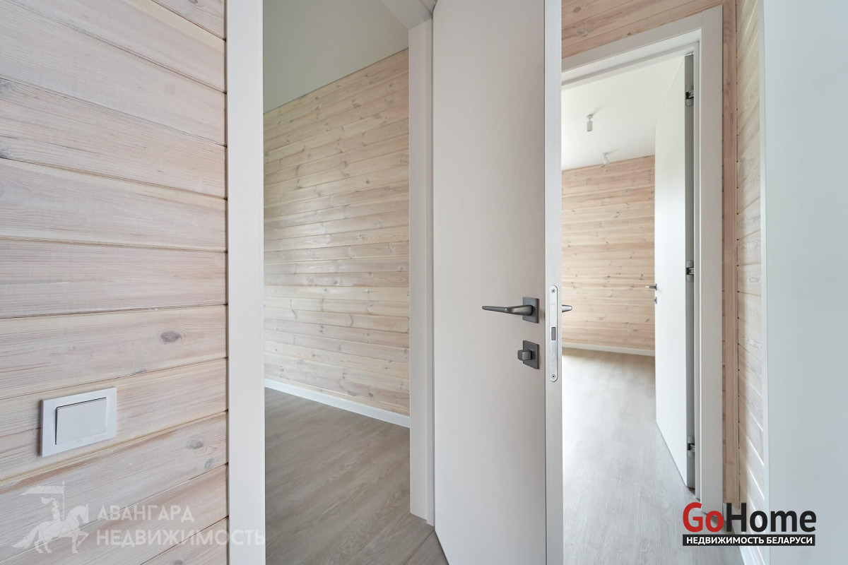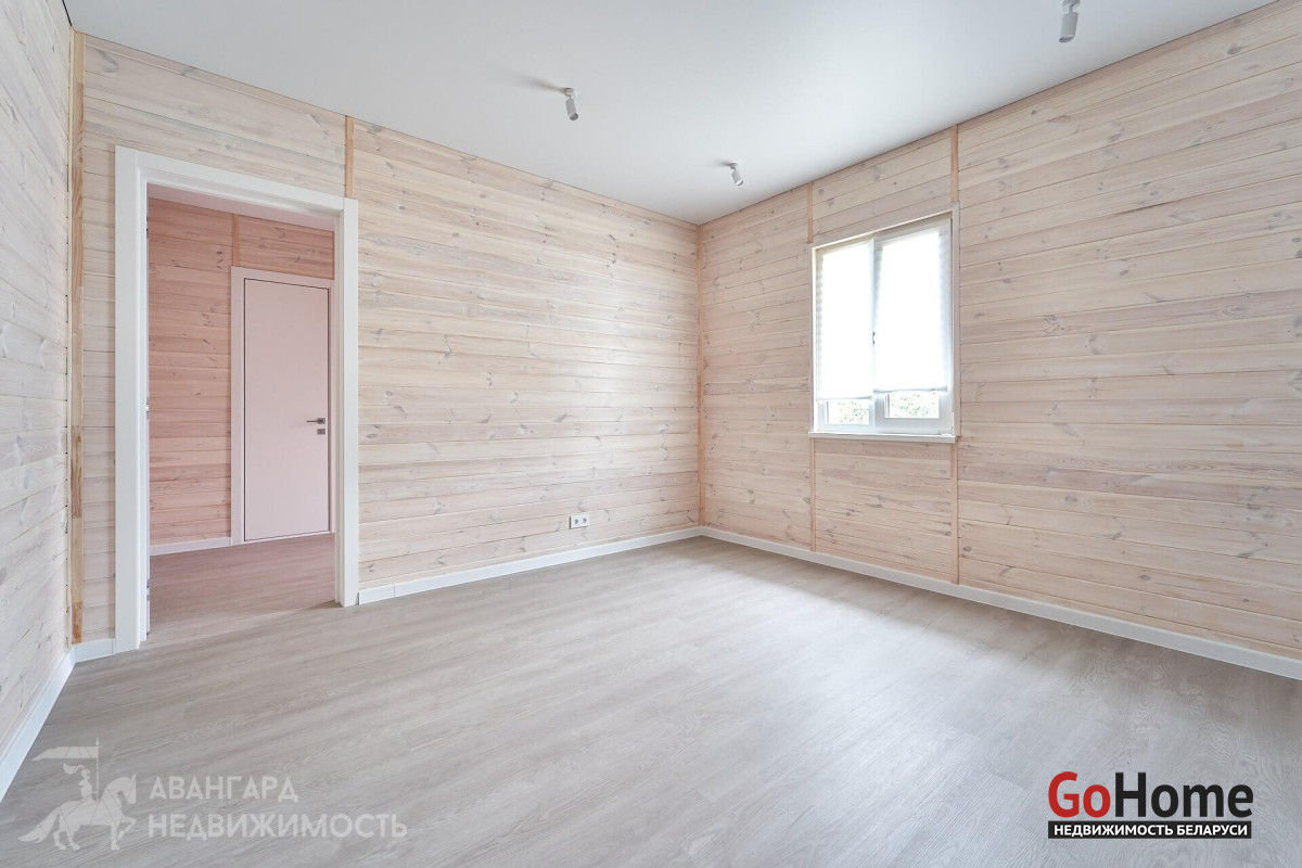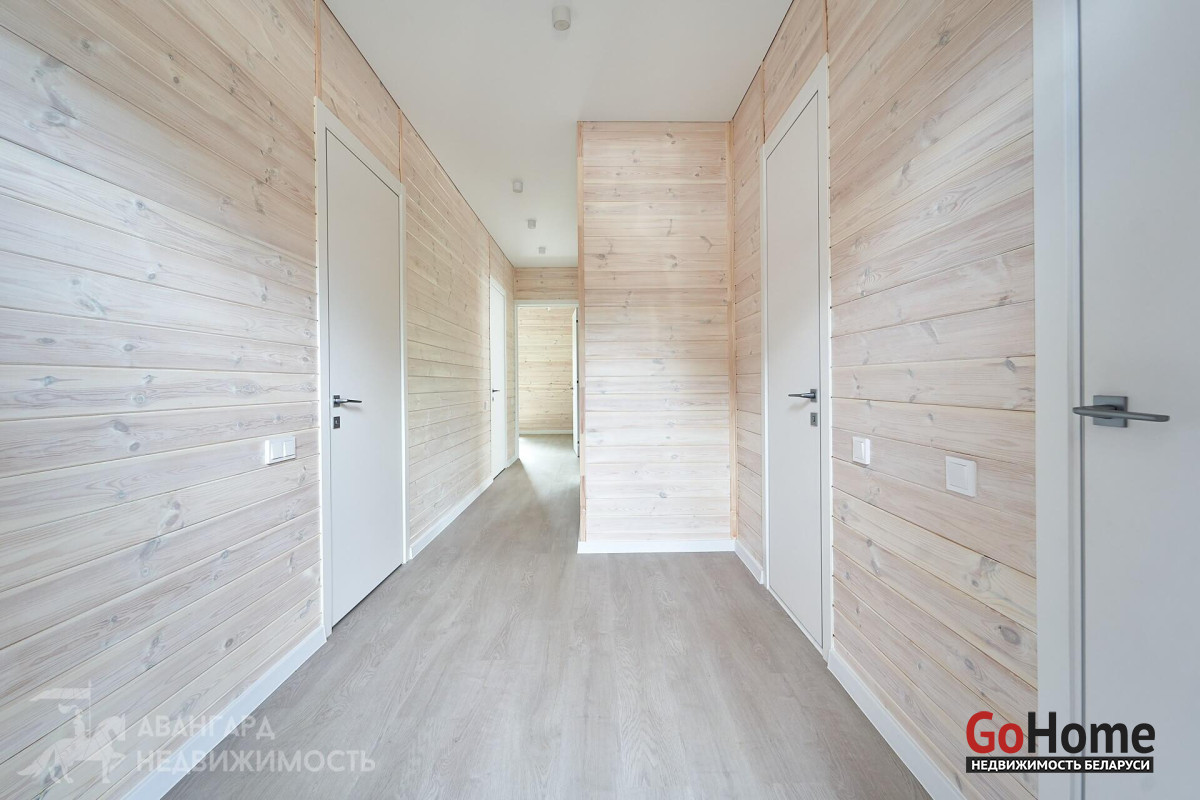 Теплые водяные полы (7 контуров), дом очень теплый. Летом комфортная температура. Фасад облицован металлопрофилем, долговечный материал, который не поведет на солнце. Материал отделки стен - сосна, на полу кварцвинил (легок в уборке и хорошо эксплуатируется), теневой натяжной потолок. Двери Юркас с качественной фурнитурой.