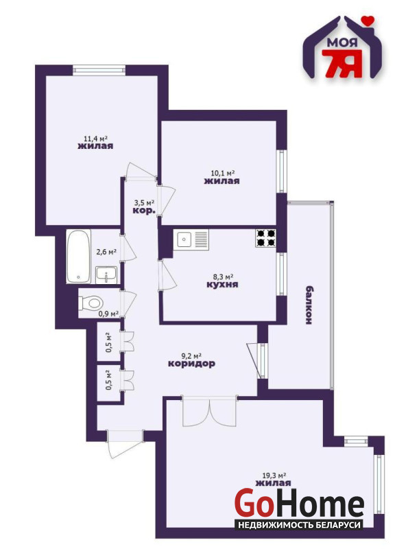-Общая площадь квартиры по СНБ составляет 67,8 кв.м., из которых 40,8 кв.м. занимают изолированный, светлые и просторные комнаты.