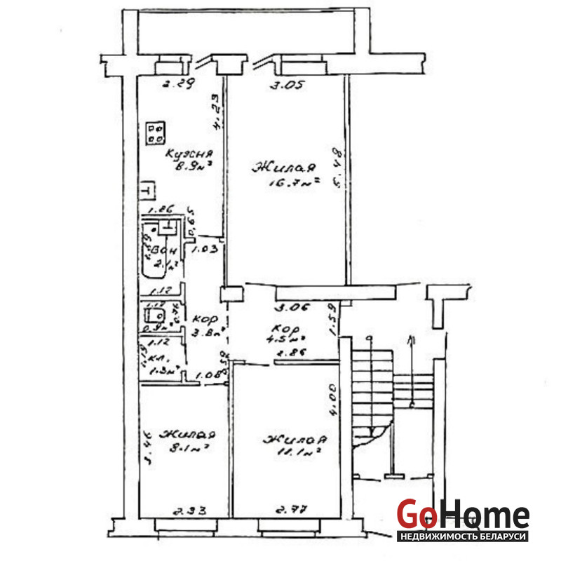 Вместе с квартирой идет бонус, а именно кирпичный гараж 6×6 с подвалом 6×5 и кирпичный сарай 5×4, также рядом с домом имеется участок размером 4 сотки.