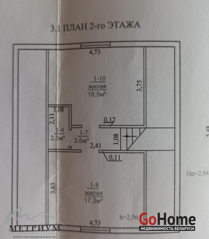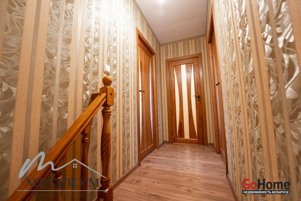 На 2-ой этаж ведёт деревянная лестница с ограждением. Также здесь расположены 2 спальные комнаты 16,5 кв.м, 17,2 кв.м и санузел 2,3 кв.м.