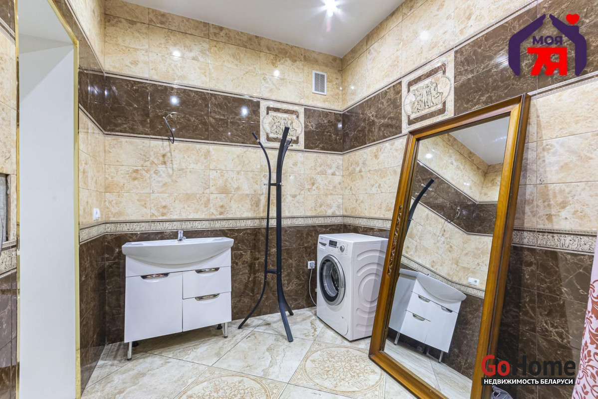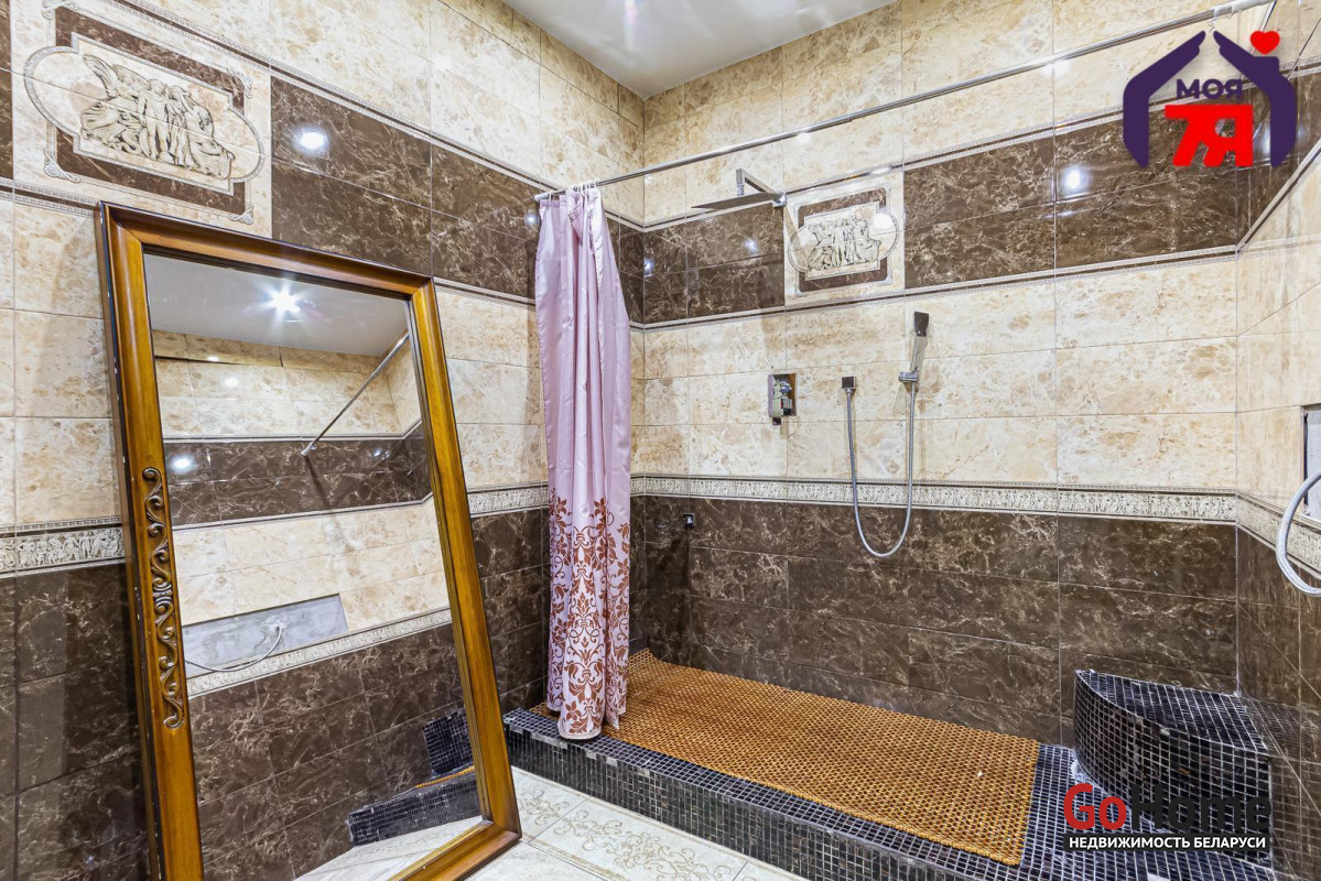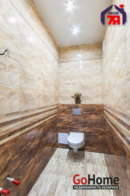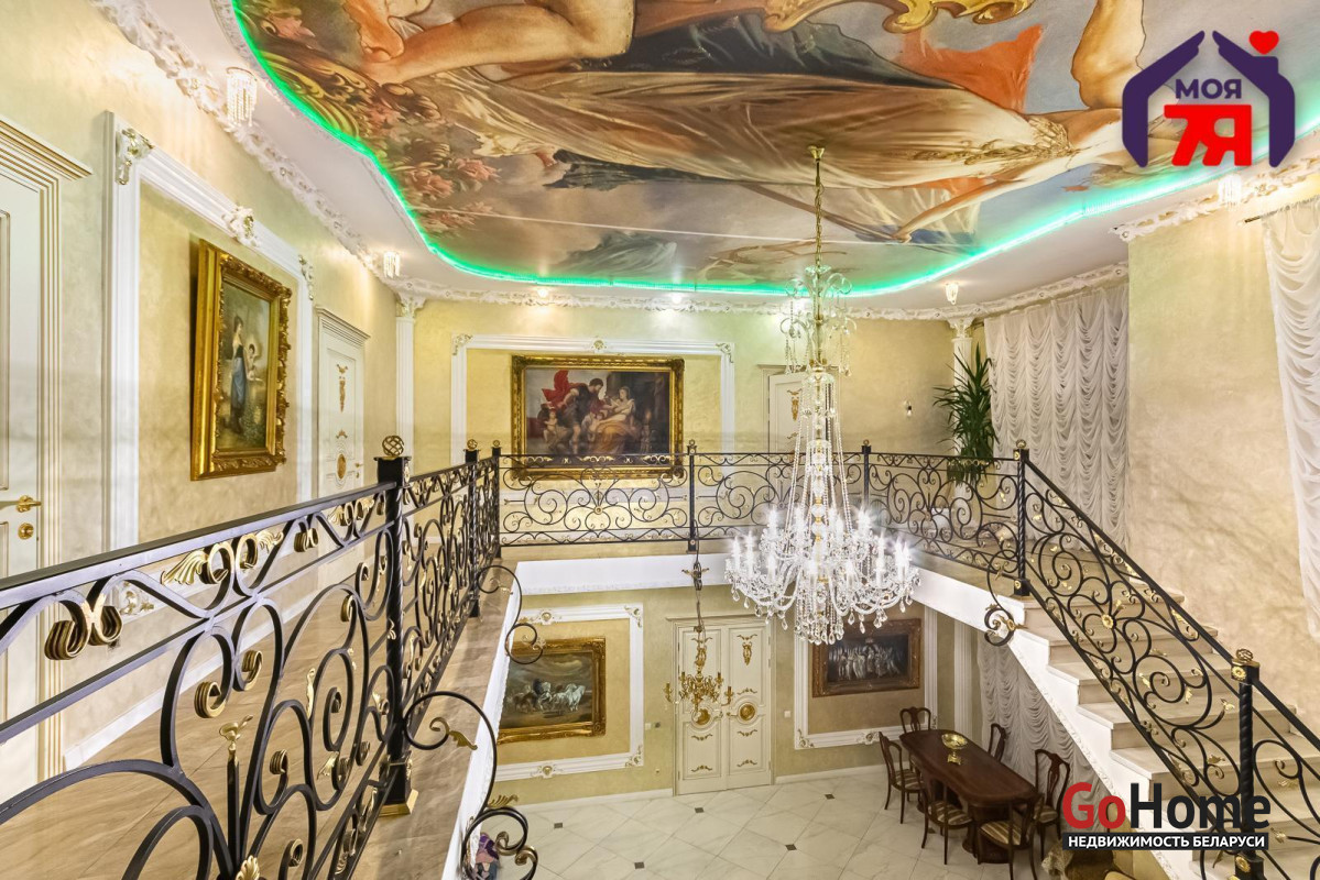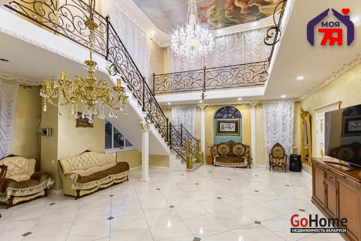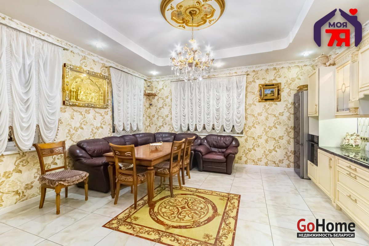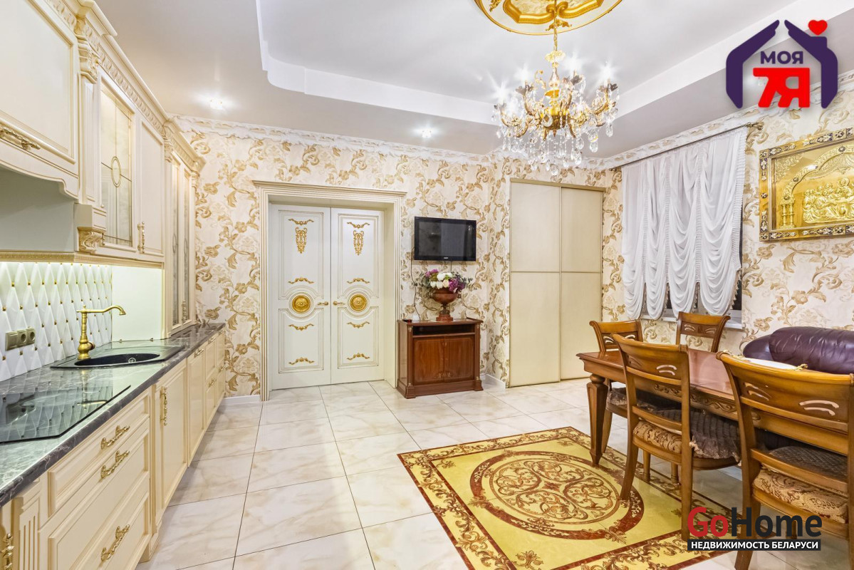 - Общая площадь дома составляет 448.2 м2, из которых 135.7 м2 занимает жилое пространство. В доме расположено 4 жилых комнаты, которые позволят с комфортом разместиться большой семье.- Особенностью этого дома является роскошный ремонт, выполненный в венецианском стиле, большинство стен и потолков декорированы позолотой и полотнами картин известных художников, олицетворяя богатство и величие Венеции того времени. Лепнина на стенах придает помещению особый шарм и изысканность, а кованая лестница, поддерживаемая колонной, гармонично дополняет стиль интерьера. Лепнина выполнена из гипса ручным способом.- Напольное покрытие первого этажа украшено керамогранитом с системой подогрева, а во всех комнатах установлена система подогрева (туалет, ванная комната, холл, кухня и прихожая). - Большие окна со шпросами (Maco), массивные деревянные двери, чешская люстра и телевизор диагональю 65" дополняют изысканный дизайн интерьера.- Но самое главное - вся мебель и элементы декора выполнены в венецианском стиле и остаются в доме. Они создают неповторимую атмосферу роскоши и элегантности.- В дом введены все необходимые коммуникации. Для дополнительного комфорта и тепла в доме установлены два котла (Bosch и Rinnai), а в случае отсутствия отопления можно использовать дополнительный топливный котел. также оборудовано несколько санузлов для удобства жильцов.- На цокольном этаже дома возможно размещение коммерческих объектов, например, парковки на 6 автомобилей. Это обеспечит дополнительный доход и удобство для жителей дома. Входные ворота в гараж от известного производителя Hormann.