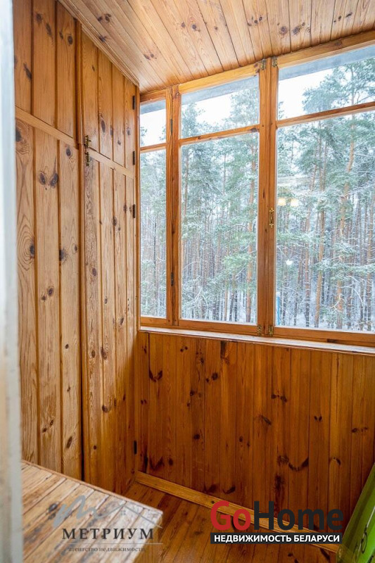 В квартире имеются три остекленные и обитые деревянной вагонкой лоджии. На лоджиях установлены встроенные шкафы.