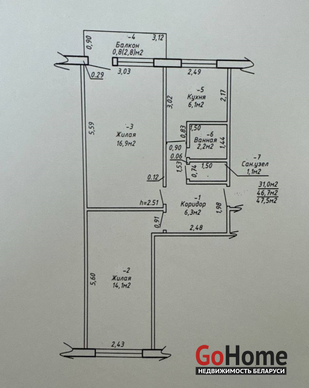 Общая площадь — 46,7кв.м.,идеально подходят для комфортного проживания семьи или аренды. Капитальный ремонт был закончен в 2024г.