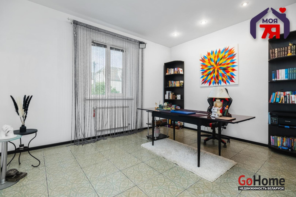 - Внутренняя отделка выполнена в европейском стиле с использованием импортных материалов, что придает дому современный и стильный вид. Просторная прихожая и коридор ведут в большую гостиную с выходом на кухню, где предусмотрены две обеденные зоны - идеальное место для семейных ужинов и встреч с друзьями. Три спальни с двуспальными кроватями, два оборудованных кабинета и две гардеробные комнаты обеспечивают достаточное пространство для работы и отдыха.