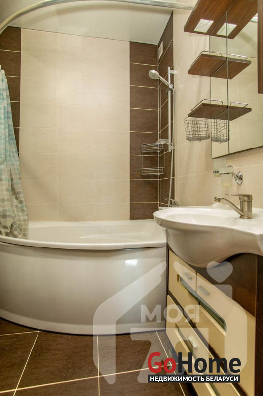 -Санузлы облицованы плиткой. Душевая зона организована грамотно, со специальной зоной под хранение косметики или мелких нужных вещей - всё аккуратно, без лишнего захламления.