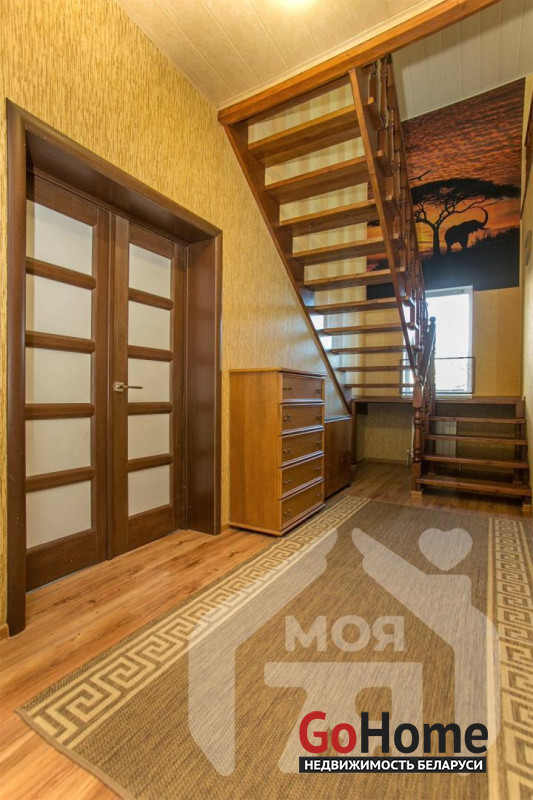 -В доме сделан хороший ремонт: встроенные точечные светильники, окна ПВХ, стены декорированы качественными обоями в спокойных оттенках. Все межкомнатные двери, наличники, плинтусы - в стильном, завершённом исполнении.