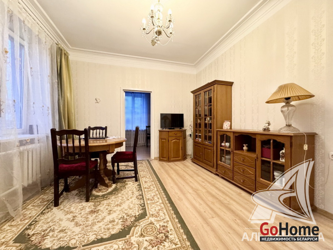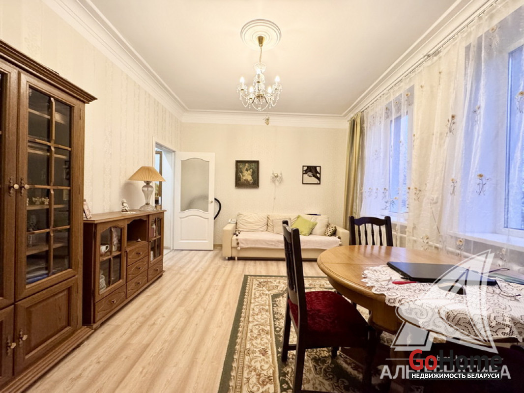 2-комнатная квартира, г. Брест, ул. Карла Маркса, 1958 г.п., 3 / 3 кирпич, 47,1 / 47,1 / 27,0 / 8,4, санузел раздельный, подвал, стеклопакеты, межкомнатные двери - массив, входная дверь металлическая, потолки (2,95) - снежка, полы - ламинат, стены - оклеены обоями, в санузле современная плитка, акриловая ванна, газовая колонка в кухне, телефон, домофон. Кухонный гарнитур, газовая плита, вытяжка, газовая колонка, холодильник, стол и стулья (в кухне), мебель (в прихожей), мебель (в зале - стол, стулья, диван, комод, шкаф, тумба под телевизор), мебель (в спальне - кровать, шкаф, люстра), карнизы. Квартира с хорошим ремонтом. Лот - 252118