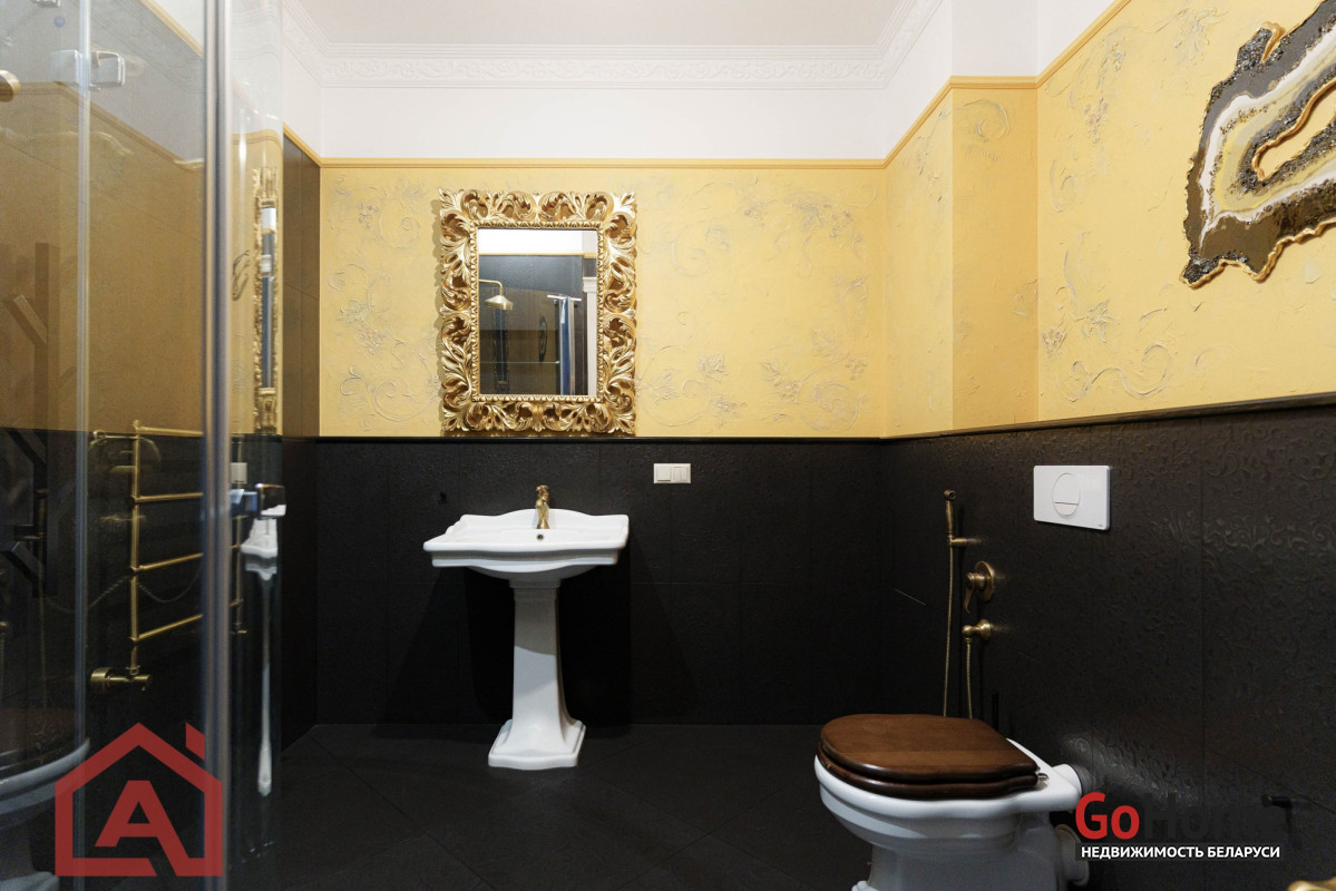 Теплые полы, паркетная доска. В санузлах плитка Сквирелл, на стенах итальянские обои, ручная роспись потолков и стен. Шикарная лестница с дубовыми ступенями, двери производство Италия.