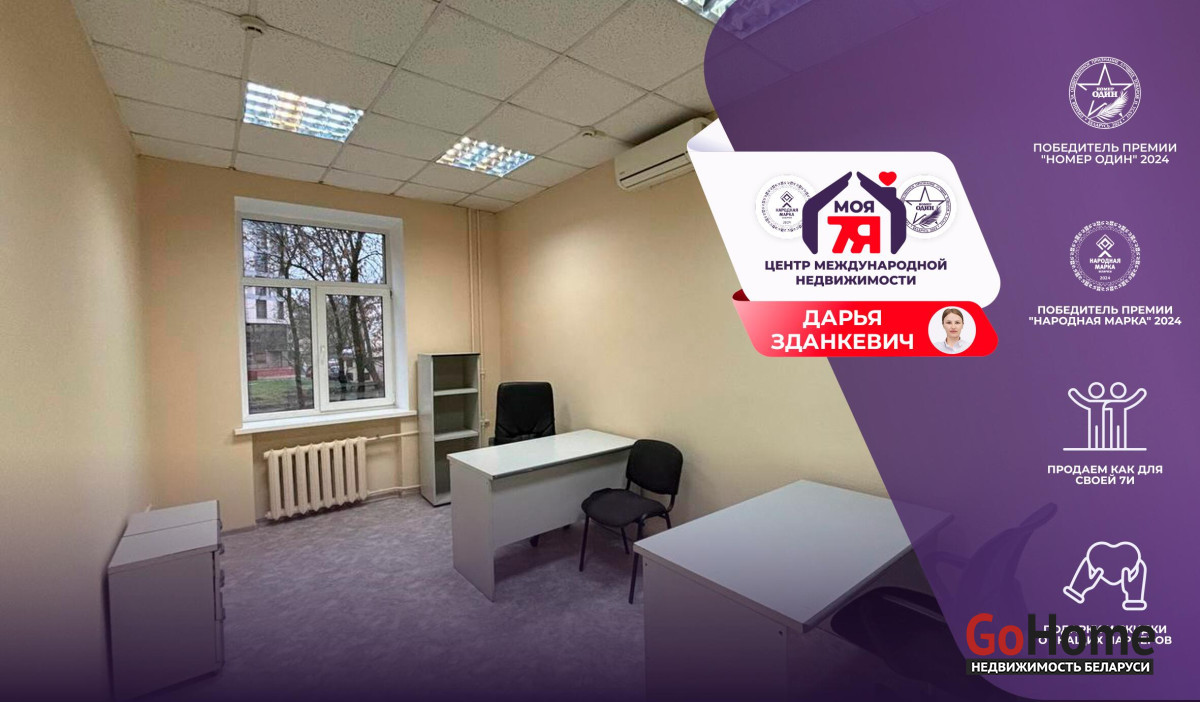 - С общей площадью 76,5 кв.м это помещение идеально подходит для создания современного офиса, салона, студии или пространства для стартапа.- Помещение включает 4 изолированные комнаты, что позволяет удобно зонировать рабочие и клиентские зоны или организовать отдельные кабинеты. Установлен кондиционер и двухкамерные ПВХ-окна, обеспечивающие комфортную температуру и минимальные теплопотери.- В наличии санузел, вода и отопление, а также встроенный шкаф-купе, который упрощает хранение и организацию пространства. Частично остающаяся мебель позволит быстрее начать работу без дополнительных вложений на старте.- Важное преимущество - возможность использования помещения как юридического адреса, что повышает удобство и стабильность ведения бизнеса.- Помещение расположено в нескольких минутах ходьбы от Парка Горького, сочетая спокойствие зелёной зоны с преимуществами делового центра Минска. Близость метро и других видов транспорта обеспечивает максимальную доступность для сотрудников и клиентов.- Рядом находится вся необходимая инфраструктура: магазины, кафе, школы, отделения банков и медицинские учреждения. Локация подходит бизнесам, которые ценят удобство, развитое окружение и близость к природе.
