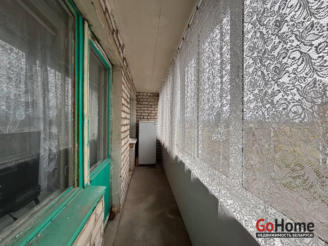 Двойная лоджия с выходом на кухню и комнату. Лоджия застеклена современными стеклопакетами. Можно жить и делать ремонт постепенно.