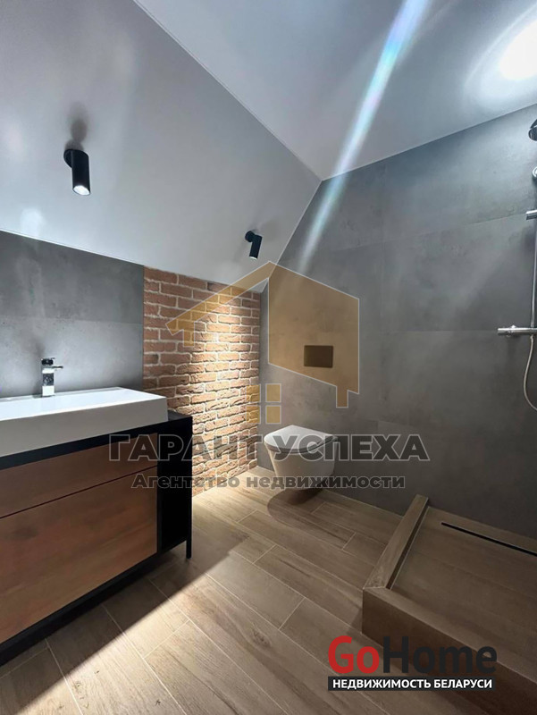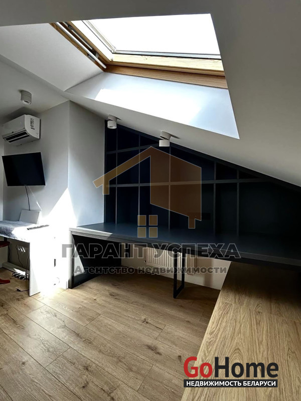 В квартире выполнен качественный ремонт. Дизайн-проект реализован на 80%. На полу - керамогранит, ламинат (в кухне и прихожей с подогревом). Стеклопакеты, межкомнатные двери - массив, входная дверь металлическая, потолки - снежка и натяжные с разноплановой системой освещения. В санузле: современная керамическая плитка, заменены сантехнические трубы, ванна, инсталляция, установлен бойлер. Газовая колонка в кухне, четыре кондиционера, новый электросчетчик. Встроенные шкафы под лестницей, мебель в санузлах, диван (в гостиной).