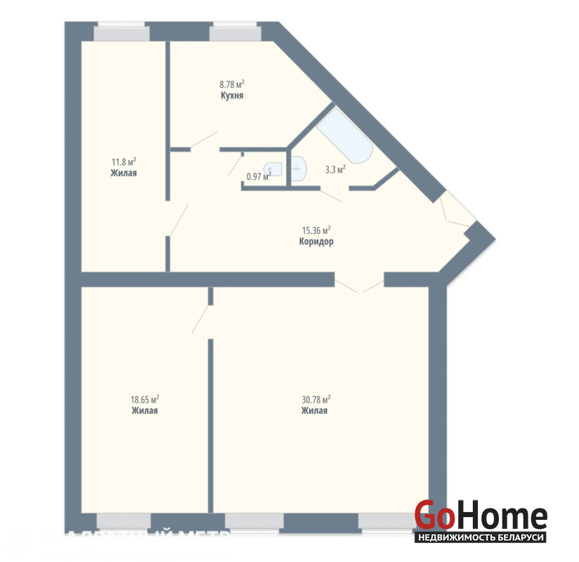 Общая площадь: 89.64. Жилая площадь: 61.23. Площадь кухни: 8.78.