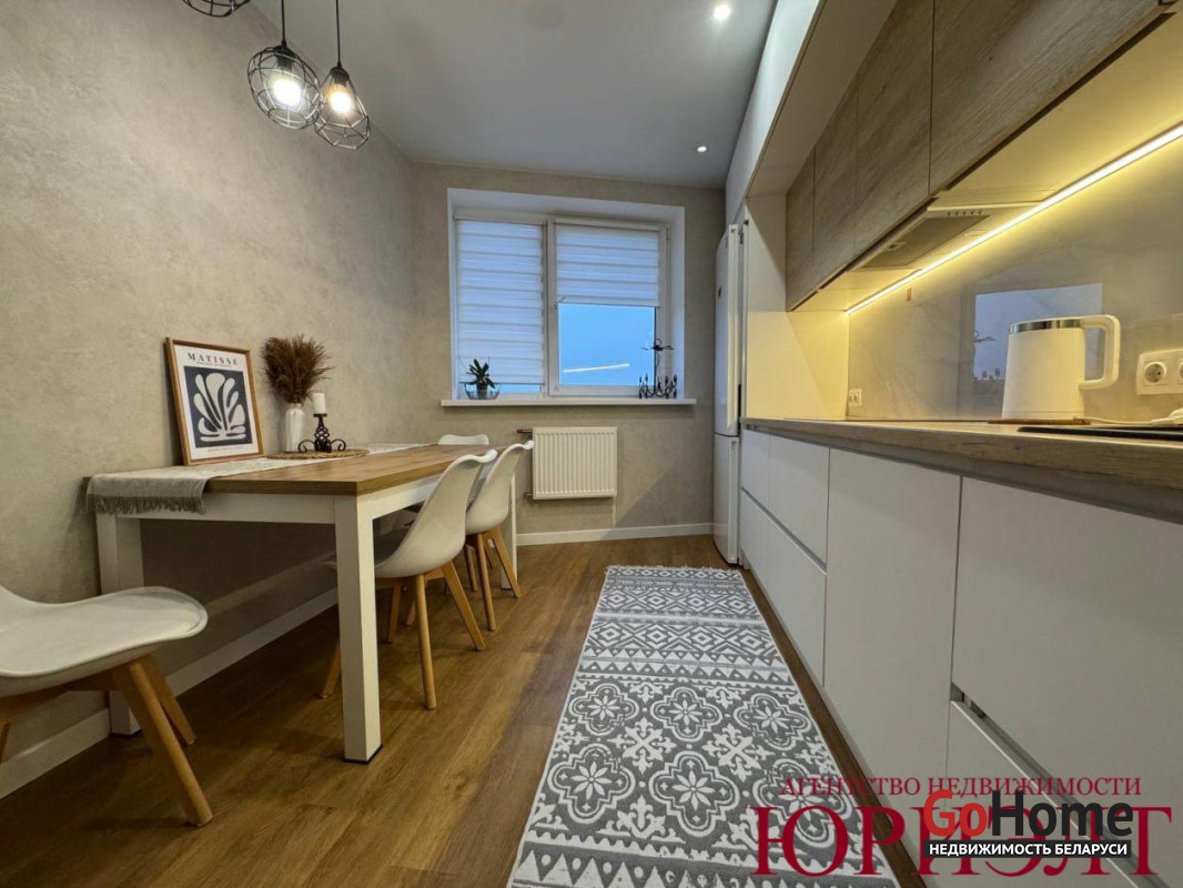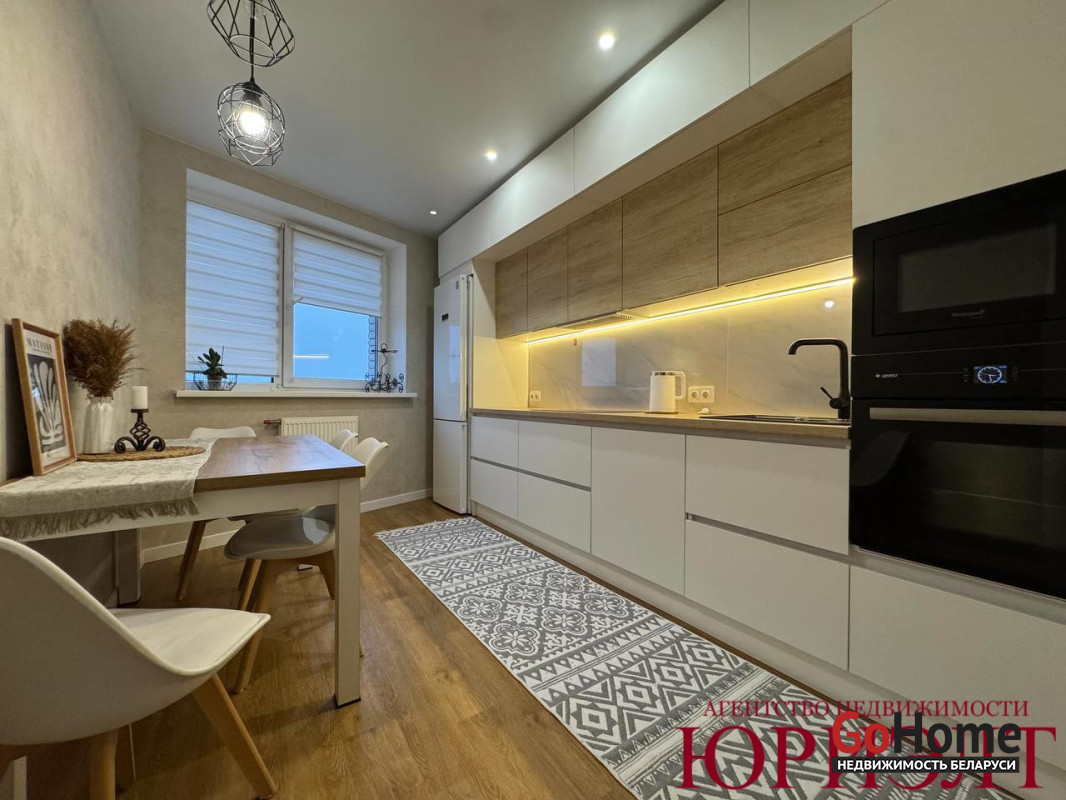 Свежий качественный ремонт, аккуратное жилое состояние. Остаётся кухня со встроенной техникой и гардеробная.