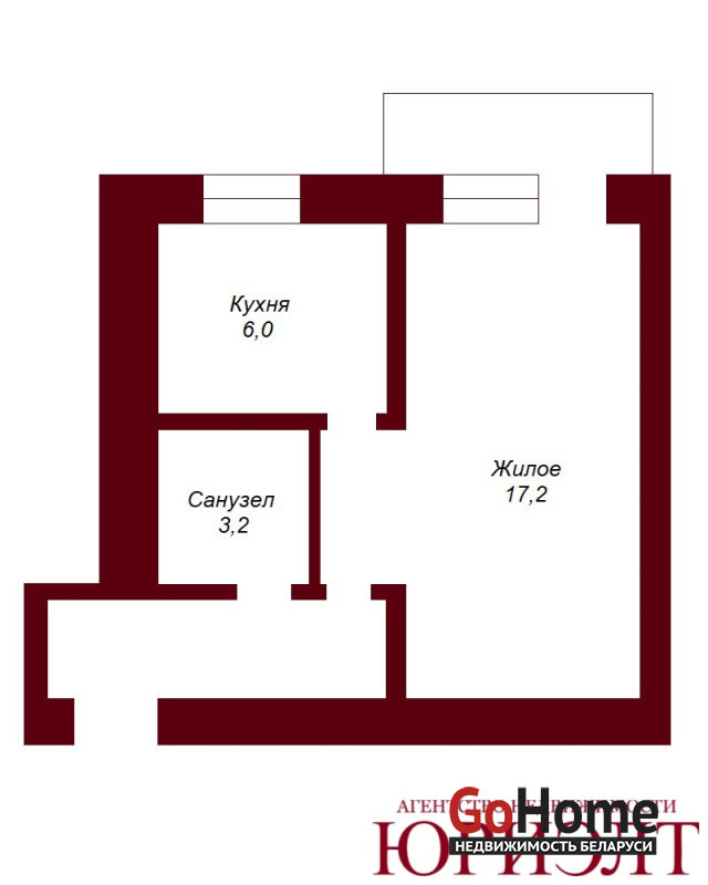 Общая площадь квартиры – 32 м2, жилая комната – 17,2 м2 с выходом на балкон, кухня 6 м2, совмещенный санузел. Также есть подвальное помещение, относящееся к квартире.