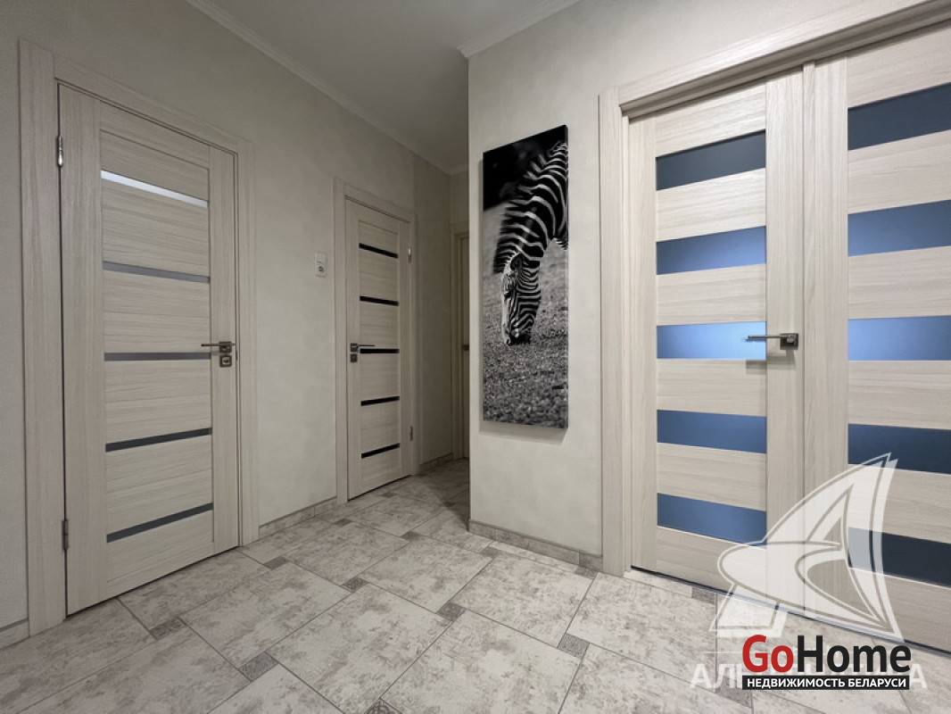 1-комнатная квартира, г. Брест, ул. Московская, 2014 г.п., 3 / 14 ж/б каркас + блок, 44,2 / 41,7 / 17,0 / 10,3, санузел раздельный, лоджия застеклена, стеклопакеты, межкомнатные двери - экошпон, входная дверь металлическая, потолки - снежка, полы - ламинат (в комнате) и плитка (в кухне, в коридоре), стены - оклеены обоями, в санузле современная плитка, акриловая ванна, домофон. Кухонный гарнитур, варочная поверхность. В квартире оборудована гардеробная. Квартира с хорошим ремонтом. Район с развитой инфраструктурой. В шаговой доступности остановки общественного транспорта, школы, сады, магазины. Лот - 252123