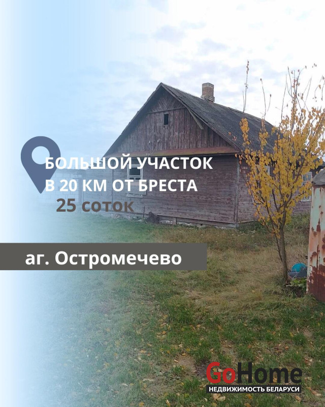 Подписывайтесь на наш instagram @ecrzby для удобного слежения за новыми актуальными объектами.Продаётся земельный участок 25 соток в аг. Остромечево, Брестский р-н Находится всего в 20 км от БрестаУчасток правильной формы, плодородная почва, растут кусты малины, смородины, яблони и др., огорожен бетонным забором На участке деревянный дом 80,4 м.кв. и сарай из блоковВода - скважина, электричество на участке, газ подведен к дому Идеальный вариант для строительства дома вашей мечты! Тем, кто ценит спокойствие, чистый воздух и мечтают о собственном доме в окружении природы, но с развитой инфраструктурой. Рядом есть все необходимое: магазины, школа, детский сад, почта.