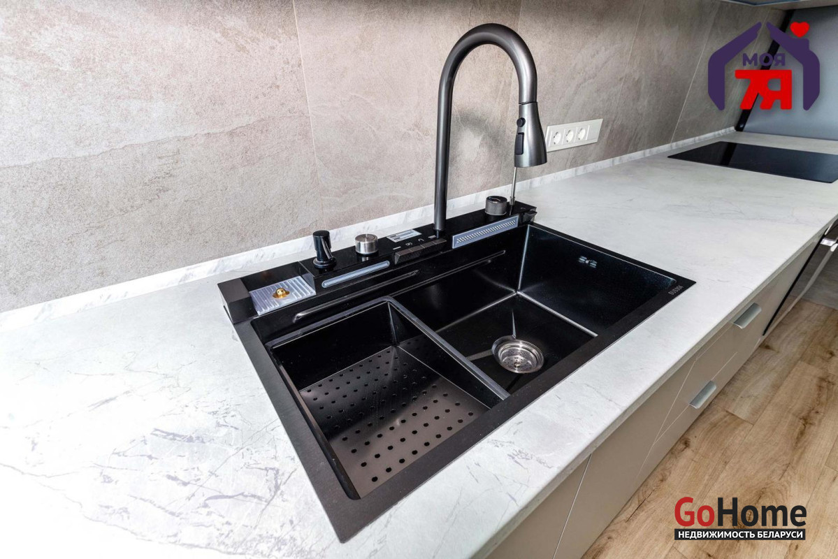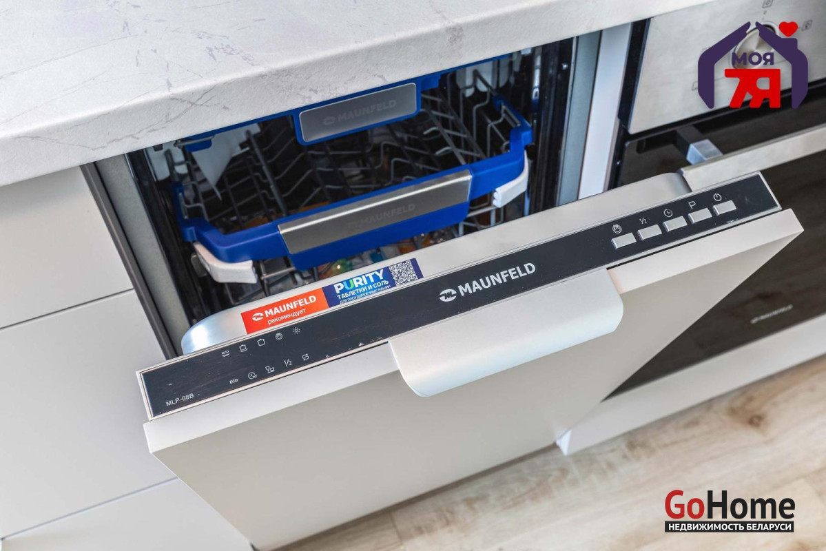 - Использованы только премиальные материалы отделки: напольное покрытие из натуральных фактур, идеально ровные стены, стильное освещение, встроенная мебель и техника известных брендов (в том числе посудомоечная машина, духовой шкаф, варочная панель, кондиционер).