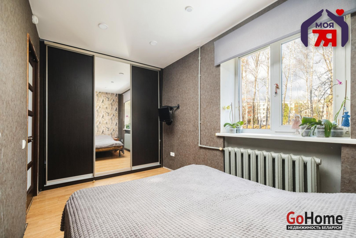 -В спальне есть встроенный шкаф-купе и кровать, что делает комнату функциональной без потери уюта. Межкомнатные двери из массива, а две новые двери остаются в подарок.
