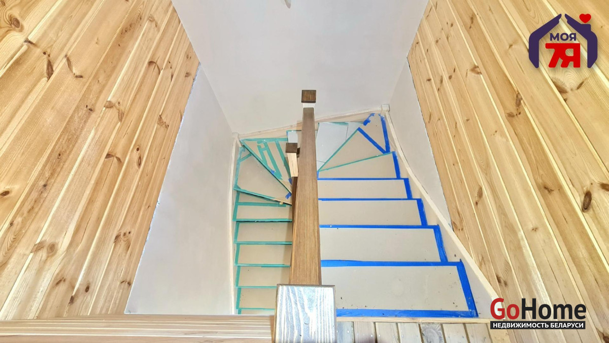 -Грамотная планировка первого уровня включает в себя 3 просторные жилые комнаты, кухню, площадью 9,6 кв.м., просторный санузел и холл. На второй этаж ведёт совершенно новая добротная лестница из массива. Второй уровень полностью утеплён, электрифицирован и готов к оформлению жилого пространства по усмотрению новых хозяев.
