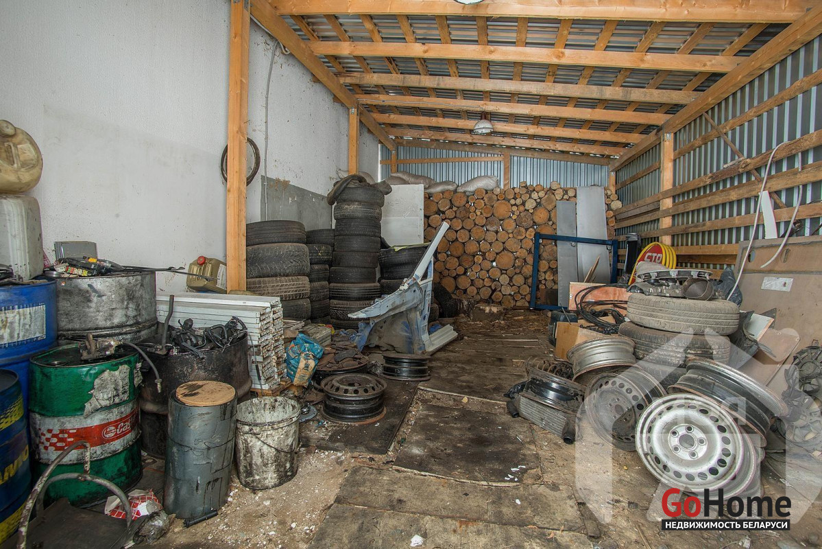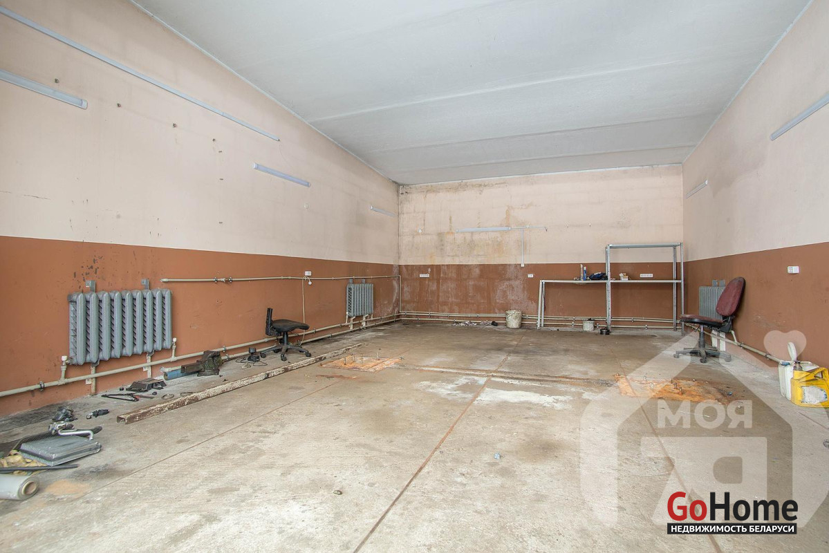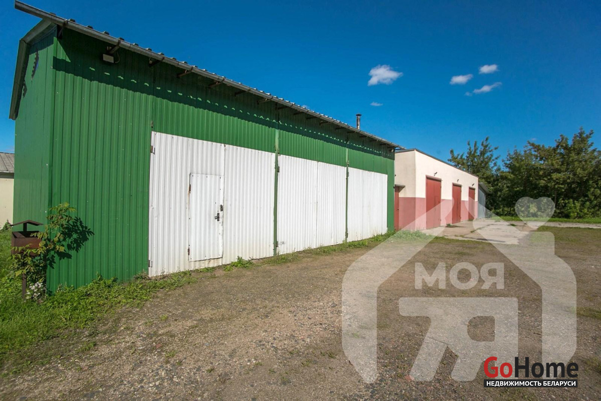 - Второе здание (2021 г.п.) — блочное, 140+ м2, разделено на три отдельных гаража с въездными воротами 2,7 м, пол стяжка, основания для автомобильных подъемников.