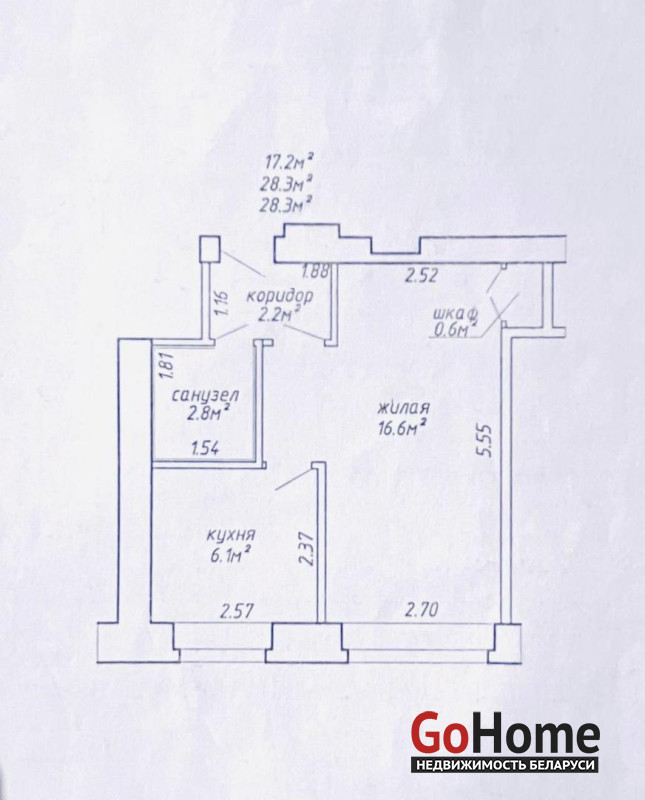 Комнат: 1 (жилая площадь 17,2 кв.м.)