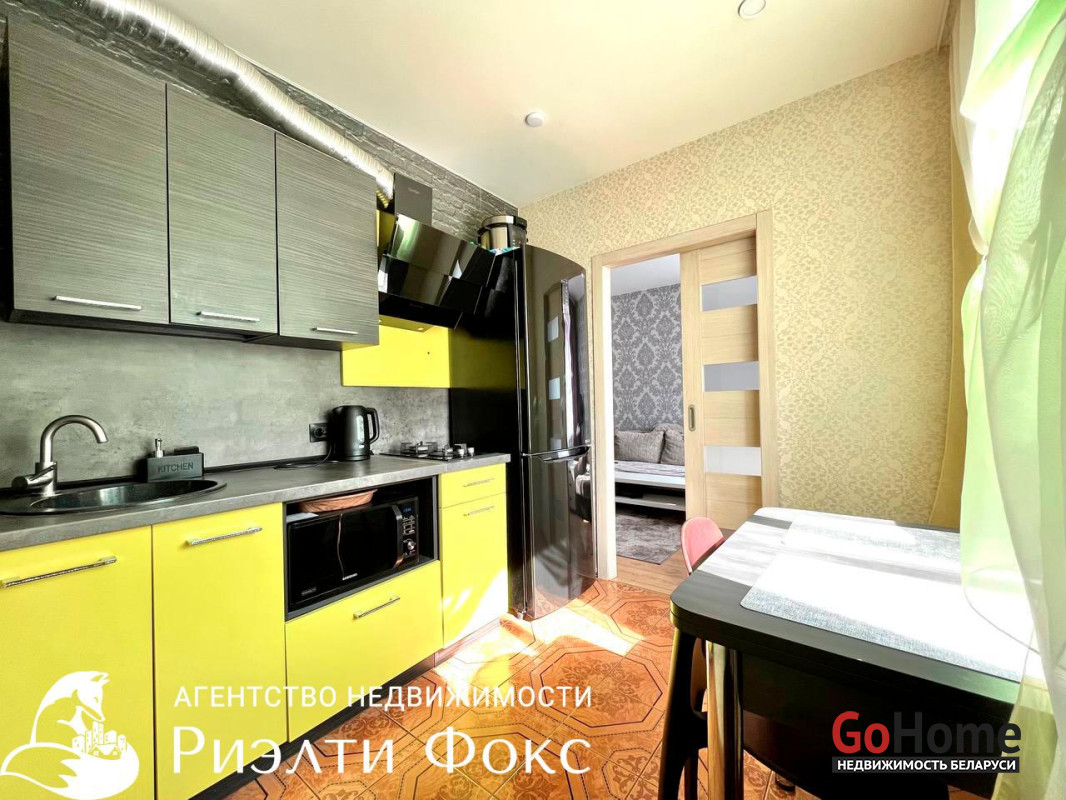 Мебель (остается или по договоренности): кухонный гарнитур, встроенные шкафы, двухспальная кровать, диван, корпусная мебель