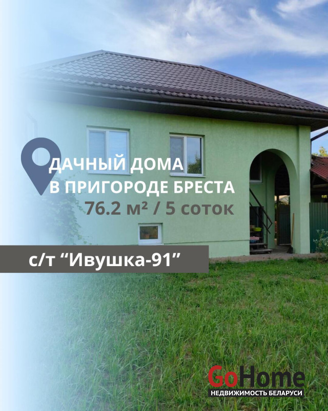 Подписывайтесь на наш instagram @ecrzby для удобного слежения за новыми актуальными объектами.Продаётся дом в СТ Ивушка - 91, Тельминский с/с, Брестский район, в 10 минутах от города, рядом с д. Бульково и аэропортом.Уютный дачный дом с участком 5 соток расположен в живописном месте, рядом лес и река Муховец.Дом 2016 г. п. общ. площадь 76.2 м. кв., состоит из одной просторной комнаты, гостевой совмещенной с кухней и санузла с душевой. Присутствует мансардный этаж, при желании есть возможность сделать дополнительные комнаты. В доме есть просторный гараж, а в гараже подвал для консерваций и хранения картофеля. В доме сделан аккуратный ремонт, все есть коммуникации: газ, в доме разведены батареи, электричество, горячая вода. Стены дома из керамзитобетонных блоков, крыша металлочерепица, участок облагорожен есть плитка и газон, установлена качель.
