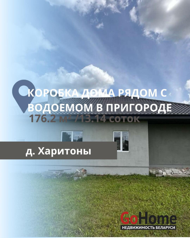 Подписывайтесь на наш instagram @ecrzby для удобного слежения за новыми актуальными объектами.Продаётся коробка дома (незавершённое законсервированное капитальное строение) в пригороде Бреста, д.Харитоны, Чернинскиий с/с Общая площадь 176,4 м2, в т.ч гараж 26м2.Стены блок г/с 250мм, утеплены пенополистиролом 50мм, оштукатурены. Фасад готов под окраску.Перекрытие из многопустотных плит по монолитному ж/б поясу.Высота этажа 2.9-3м. Кровля из металлочерепицы. Фундамент сборный из ж/б блоков 300-400 мм. Окна ПВХ, 5 камерный профиль. Установлены роллетные автоматические ворота в гараж.В доме выполнена ж/б плита пола, толщиной 150 мм.Газ подведен к дому, электроснабжение централизованное.Участок 0, 1314 га правильной формы, выровнен, благоустроен и огорожен Дом находится в живописном месте, рядом водоём. Хорошие подъездные пути.
