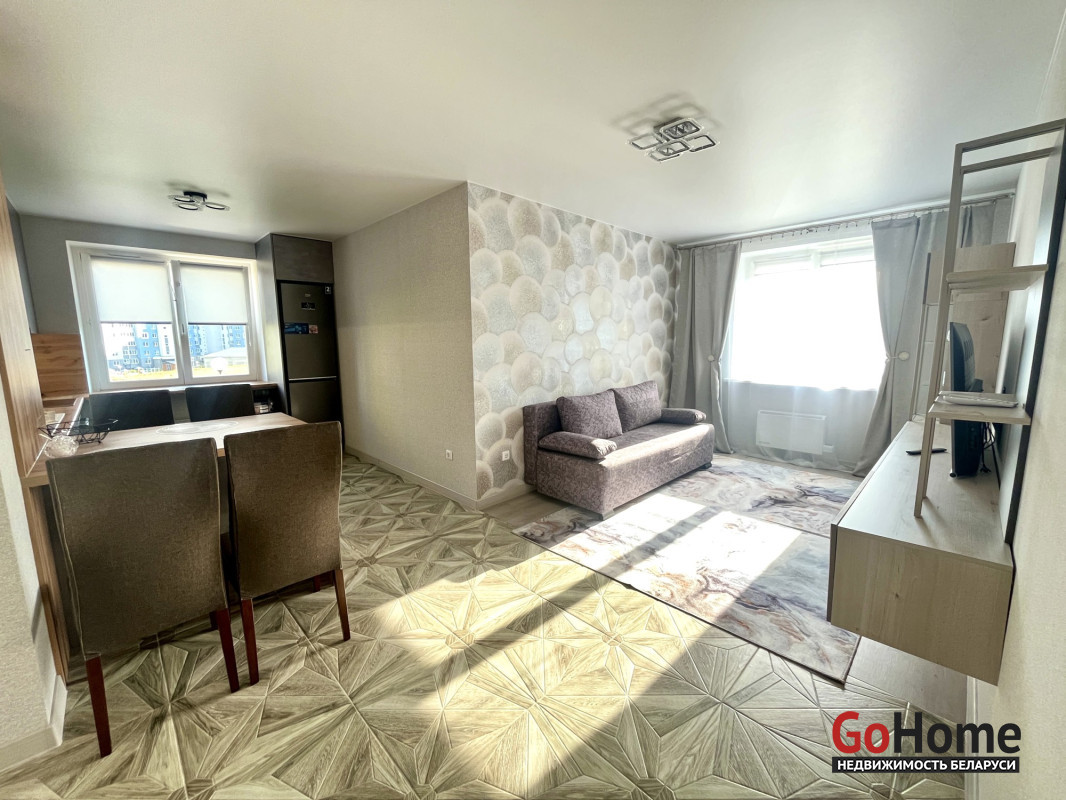 Параметры квартиры: площадь – общая (по СНБ) 78.2 кв.м., жилая – 59.5 кв.м., кухня – гостиная -26.5 кв. м. Квартира со свежим современным ремонтом. Готова к заселению! Продаётся практически со всей мебелью и техникой. В прихожей расположен вместительный шкаф. Металлическая входная дверь. Материал полов – ламинат, плитка (прихожая, кухня).Санузел облицован плиткой.. Качественный кухонный гарнитур со встроенной бытовой техникой. Просторная застеклённая лоджия с выходом из спальной комнаты. По периметру дома установлена система видеонаблюдения. Большая детская игровая площадка. Дом обслуживает эффективное товарищество собственников: к вашим услугам свой председатель, сантехник, электрик, бухгалтер, которые по первому звонку помогут решить вопросы. Коллектив сознательных жильцов. За дополнительной информацией просьба обращаться по телефону. Возможен торг. Поможем продать Вашу недвижимость для приобретения этой.