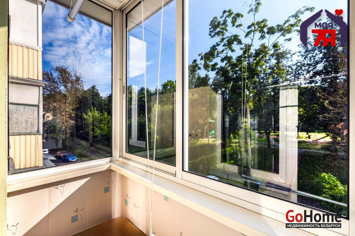 -Из жилой комнаты есть выход на застеклённый балкон, где можно устроить уютную зону отдыха, мини-кабинет или просто наслаждаться вечерним чаем с видом на зелёный двор.