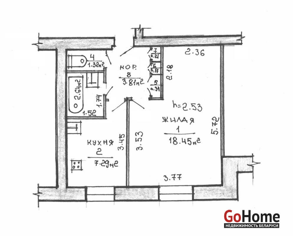 - функциональная планировка: жилая комната 18,5 кв.м с просторной нишей;