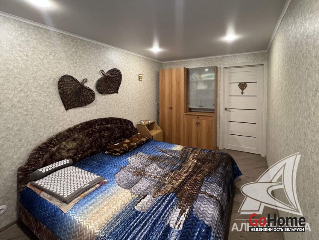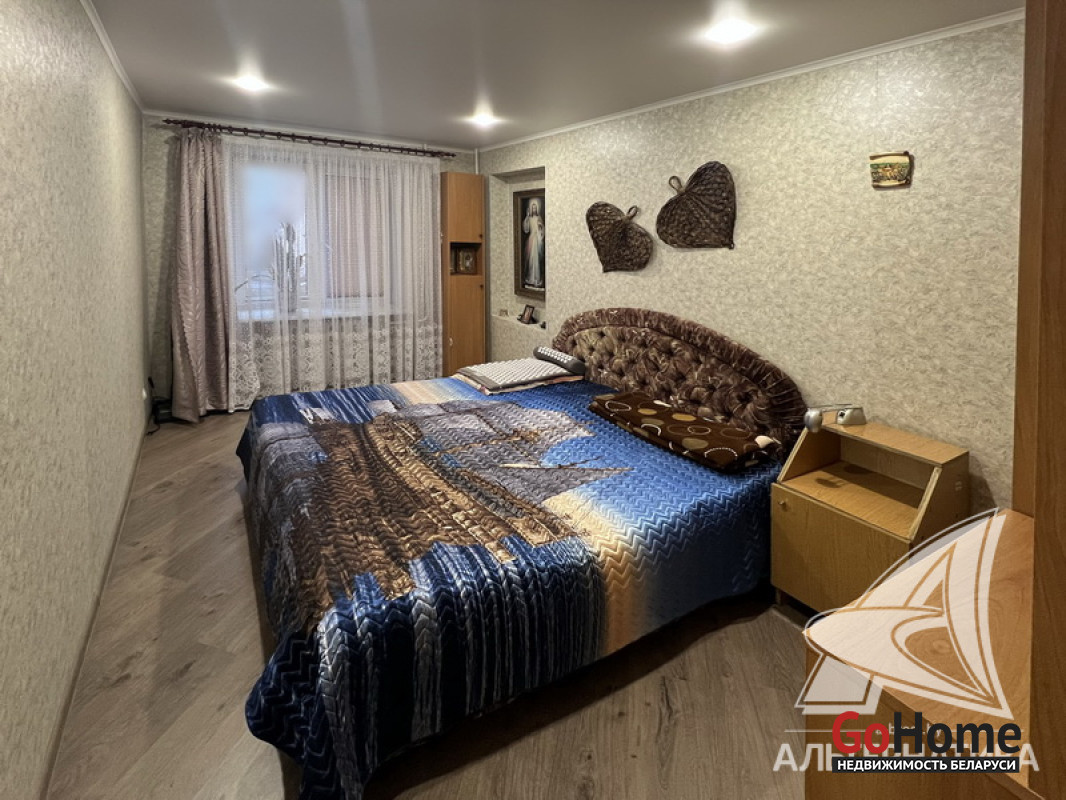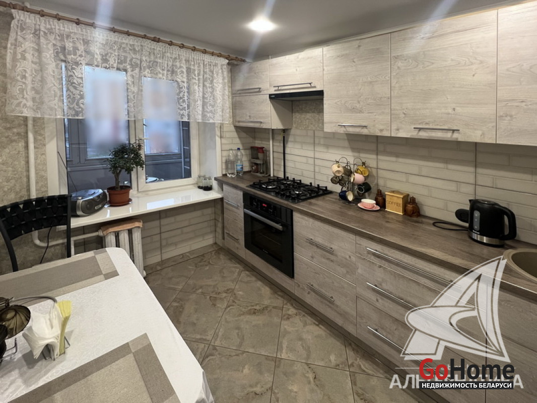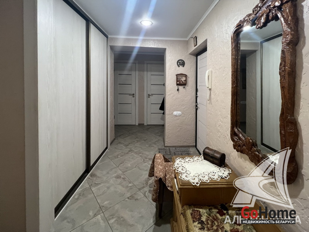 2-комнатная квартира, г. Брест, ул. Мицкевича, 1977 г.п., 5 / 9 кирпич, 52,3 / 49,1 / 30,4 / 7,13, санузел раздельный, лоджия застеклена, стеклопакеты, межкомнатные двери - шпон, входная дверь металлическая, натяжные потолки (матовые, 2,45 м), полы (положены на стяжку и утеплены) - ламинат и плитка, стены - оклеены обоями и жидкие обои (в коридоре), в санузле современная плитка, чугунная ванна, телефон, домофон. Кухонный гарнитур, варочная поверхность, духовой шкаф, вытяжка, встроенный шкаф-купе. Квартира с хорошим ремонтом. Один пассажирский лифт. Чистый подъезд. Лот - 252142