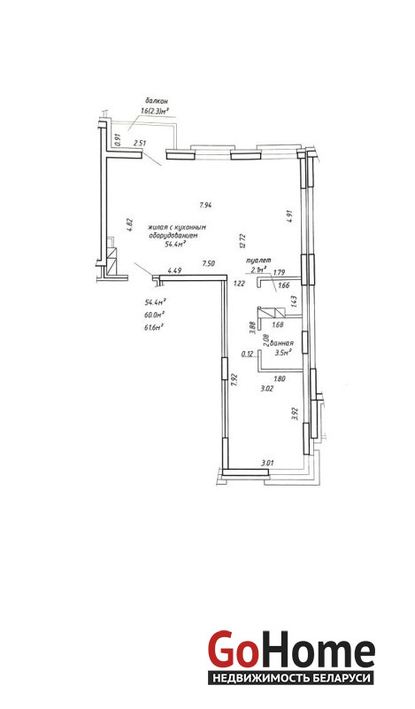 Свобода планировки: Просторная площадь 61,6м2 (по СНБ) и удачное расположение окон (запад/восток) открывают простор для функциональных решений.