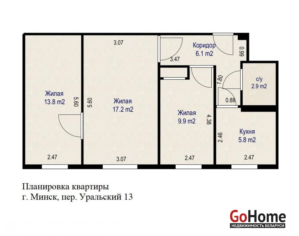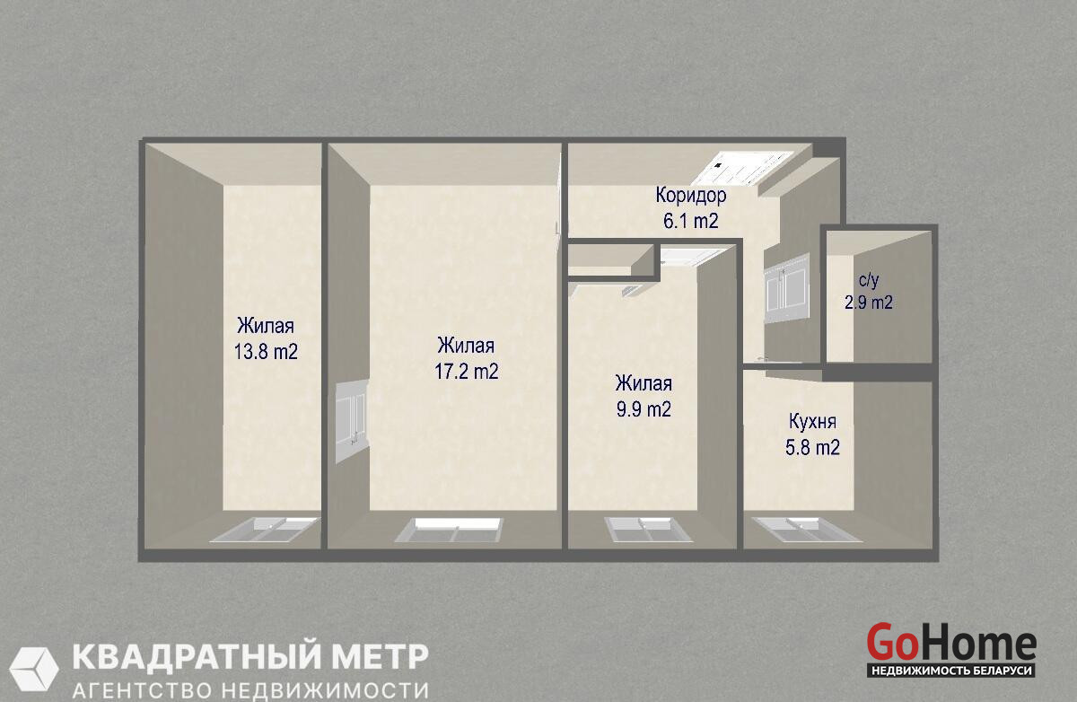 В квартире установлены счетчики воды, света, газа, проведено оптоволокно.