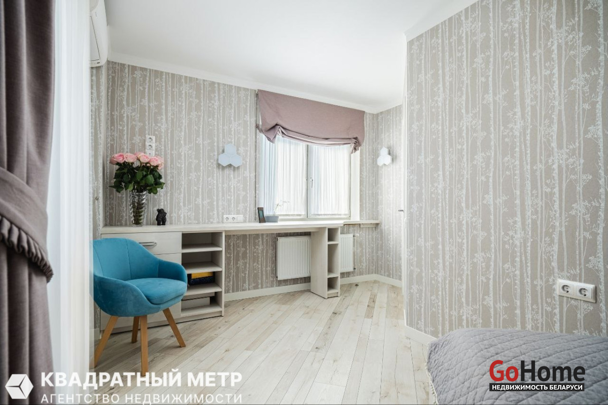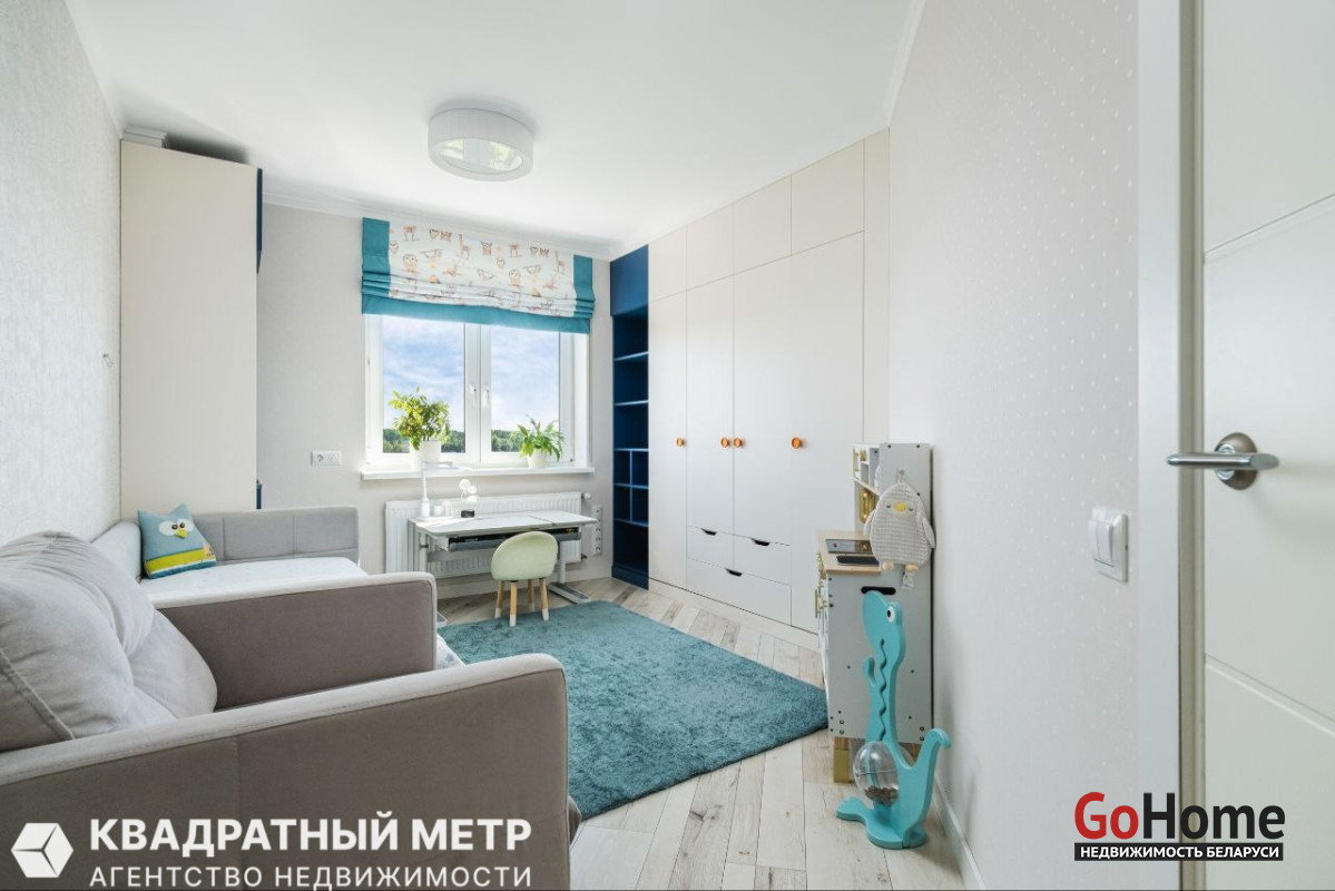 Ремонт выполнен с использованием только качественных импортных материалов. Стены идеально выровнены, импортные обои, декоративная штукатурка. Полы – паркетная доска, ламинат и керамогранит, подогрев полов в зоне кухни, в санузле - плитка. Потолки – гипсокартон + окрашено (спальня, детская), натяжной потолок (в санузле, кухня-гостиная, коридор).