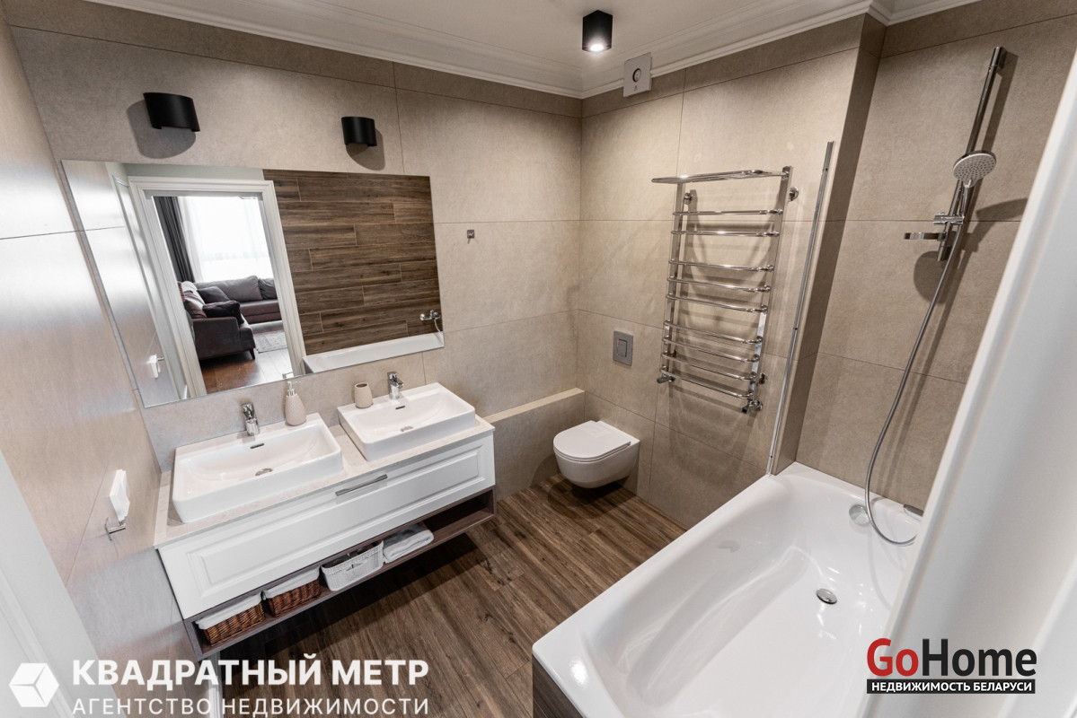 5. Два санузла с душевой и ванной комнатами. Душевая система с контролем температуры воды Hansgrohe (Германия). Электрика EATON и JUNG (Германия). Сантехника Hangrohe (Германия), RAVAK (Чехия)