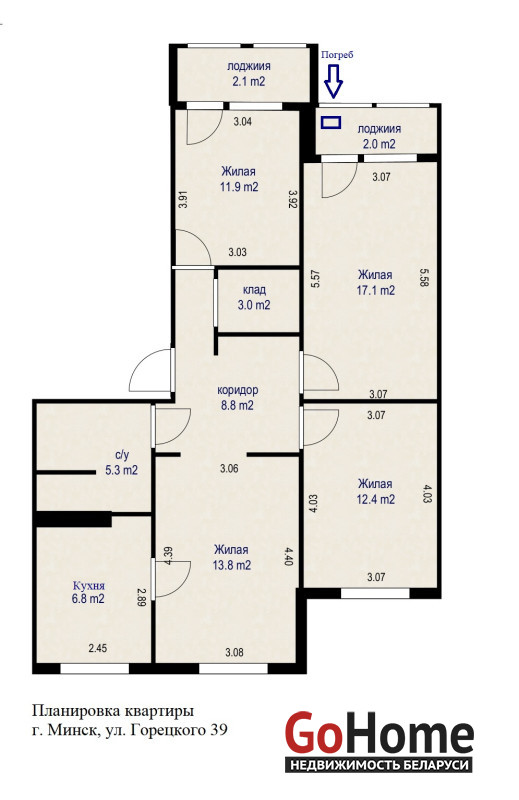 • 2 лоджии с остеклением, из одной выход в утепленный вместительный погреб.