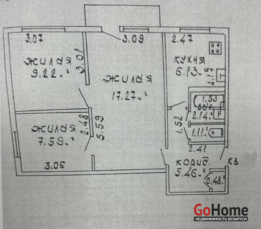 Был произведён капитальный ремонт дома в 2024 году. Площадь комнат 17,27;7,59 и 9,22 кв.м. Наличие застеклённого балкона. Окна деревянные, полы ДСП, входная металлическая дверь. Установлены приборы учёта воды, газа и электричества. Имеется подвальное помещение.