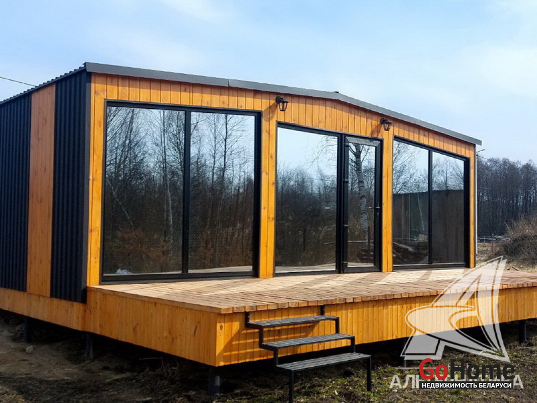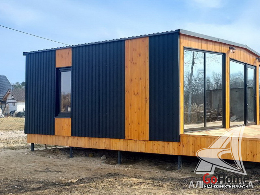 Стены: материал - сборно-щитовой. Кровля: металлопрофиль (профнастил). Фундамент: столбчатый сборный.