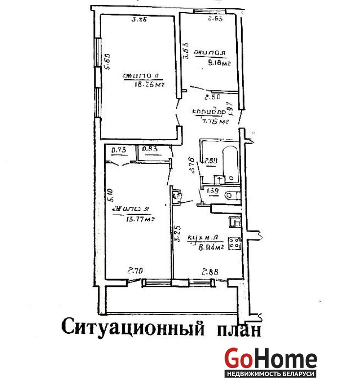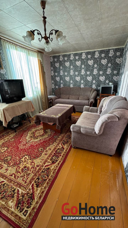 Общая площадь 64 м2, кухня 9 м2. Квартира расположена на первом этаже, трех этажного дома. Возле дома есть парковочные места.