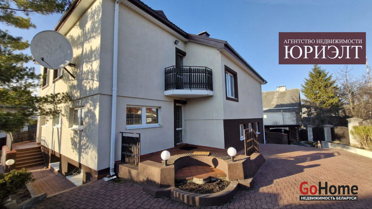 В доме имеется баня, бильярдная, гараж в подвальном помещении, три санузла, два камина, природный газ, центральная канализация, водопровод. Крыша - металлочерепица, пластиковые стеклопакеты. Участок 6,94 соток облагорожен и огорожен забором, практически прямоугольный. Земля в пожизненно наследуемом владении. Высажены туи, сосны, плодовые деревья. Двор выложен тротуарной плиткой. На участке организована зона барбекю, установлен фонтан, бассейн и беседка.