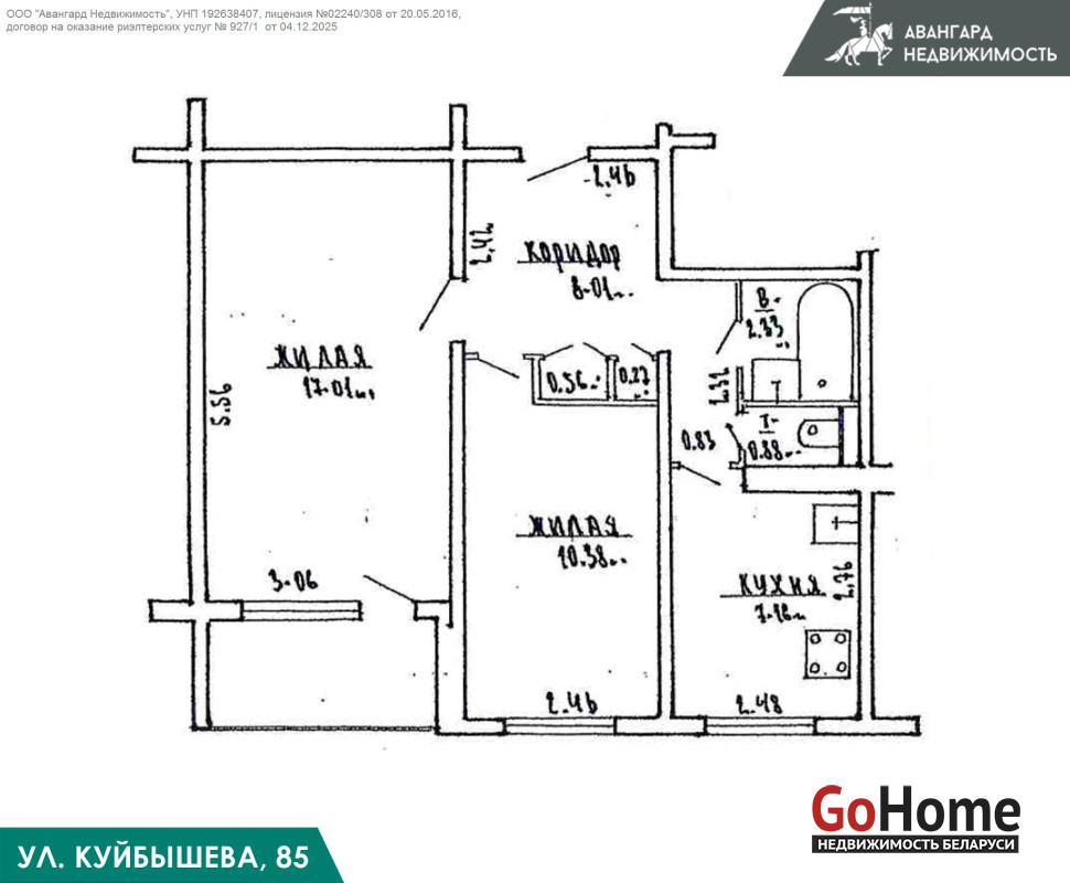 1/2 доли в 2-комнатной квартире ул. Куйбышева, 85
