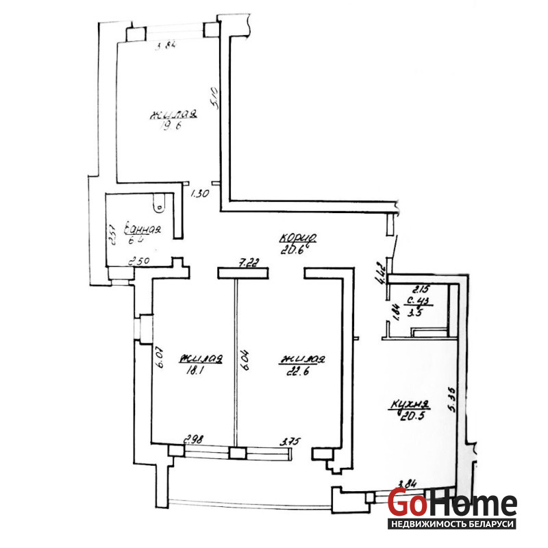 Общая площадь 111,3 м3/ жилая площадь 60,3 м2 (комнаты 22,6 м2, 19,6 м2, 18,1 м2 - все раздельные)/ кухня 20,5 м2, плита электрическая. 2 с/у - совместные, в каждом стоит дополнительно бойлер, в комнатах кондиционеры.