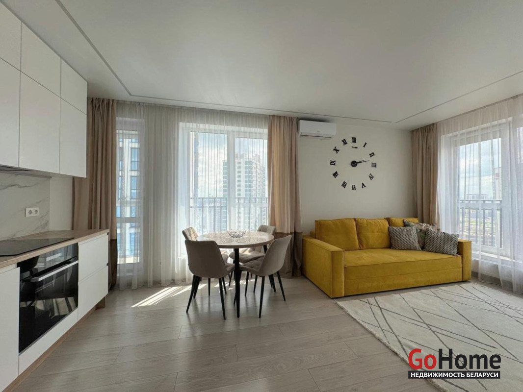 В квартире есть все необходимое для комфортного проживания: холодильник, свч-печь и духовой шкаф встроенные, мелкая бытовая техника, посудомоечная машина, стиральная машина, телевизор, кондиционер. Квартира новая, ремонт сделан из дорогостоящих материалов! Вторая комната может быть оборудована под рабочий кабинет или детскую!