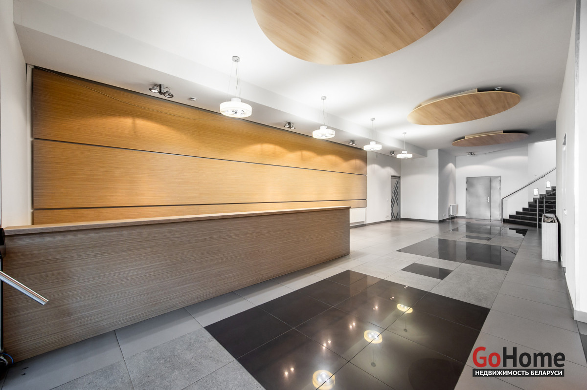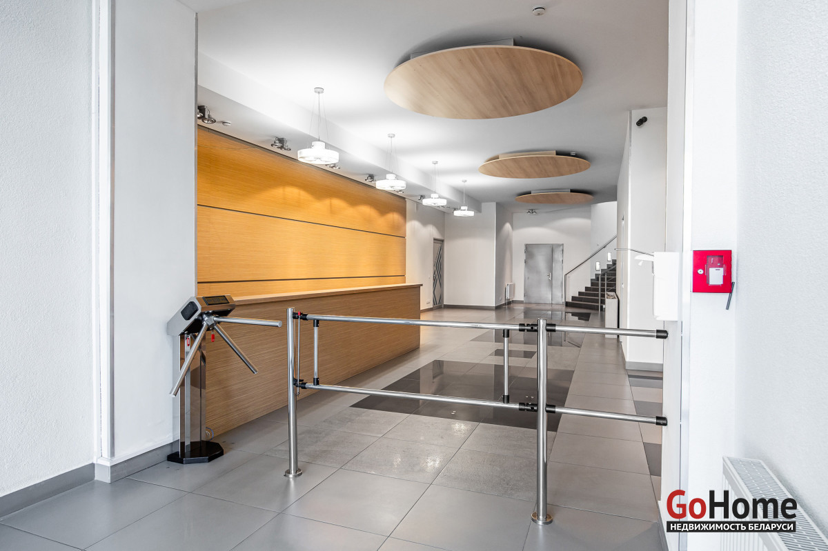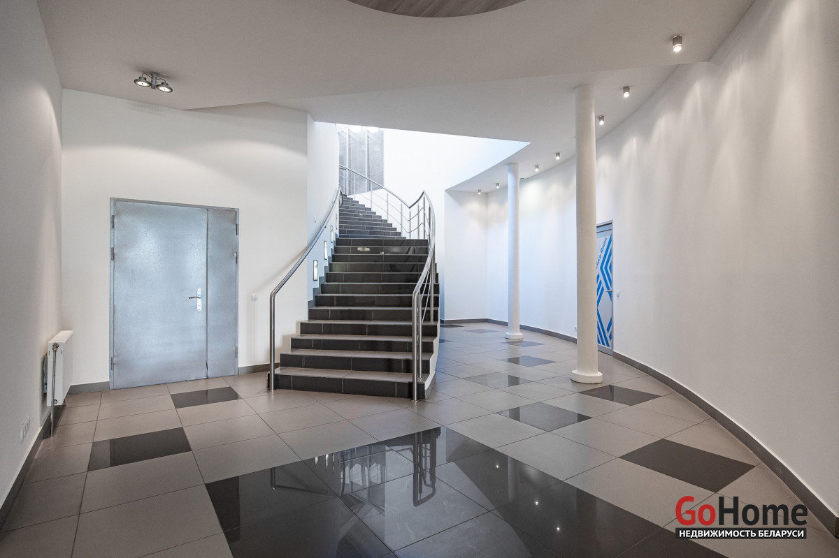 - на первом этаже расположены: зона ресепшен, группа санузлов, комната для организации мини-кухни и лаунж зоны, архивная для документов, кладовая (душевая), гардеробная. Дизайнерская отделка, видеонаблюдение.
