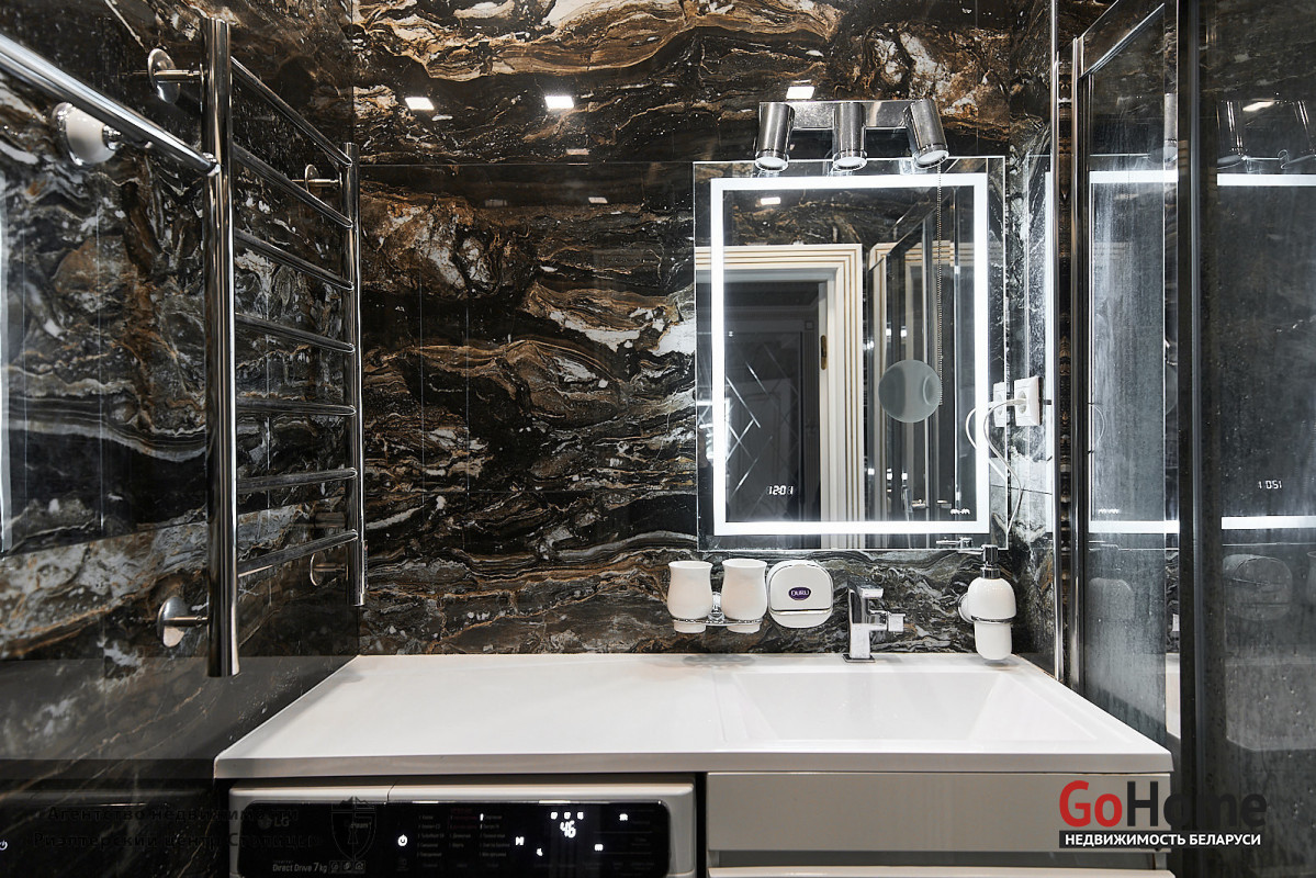 - Современный санузел: душевая с качественной сантехникой и отделкой, функциональная прачечная зона, стильный дизайн.