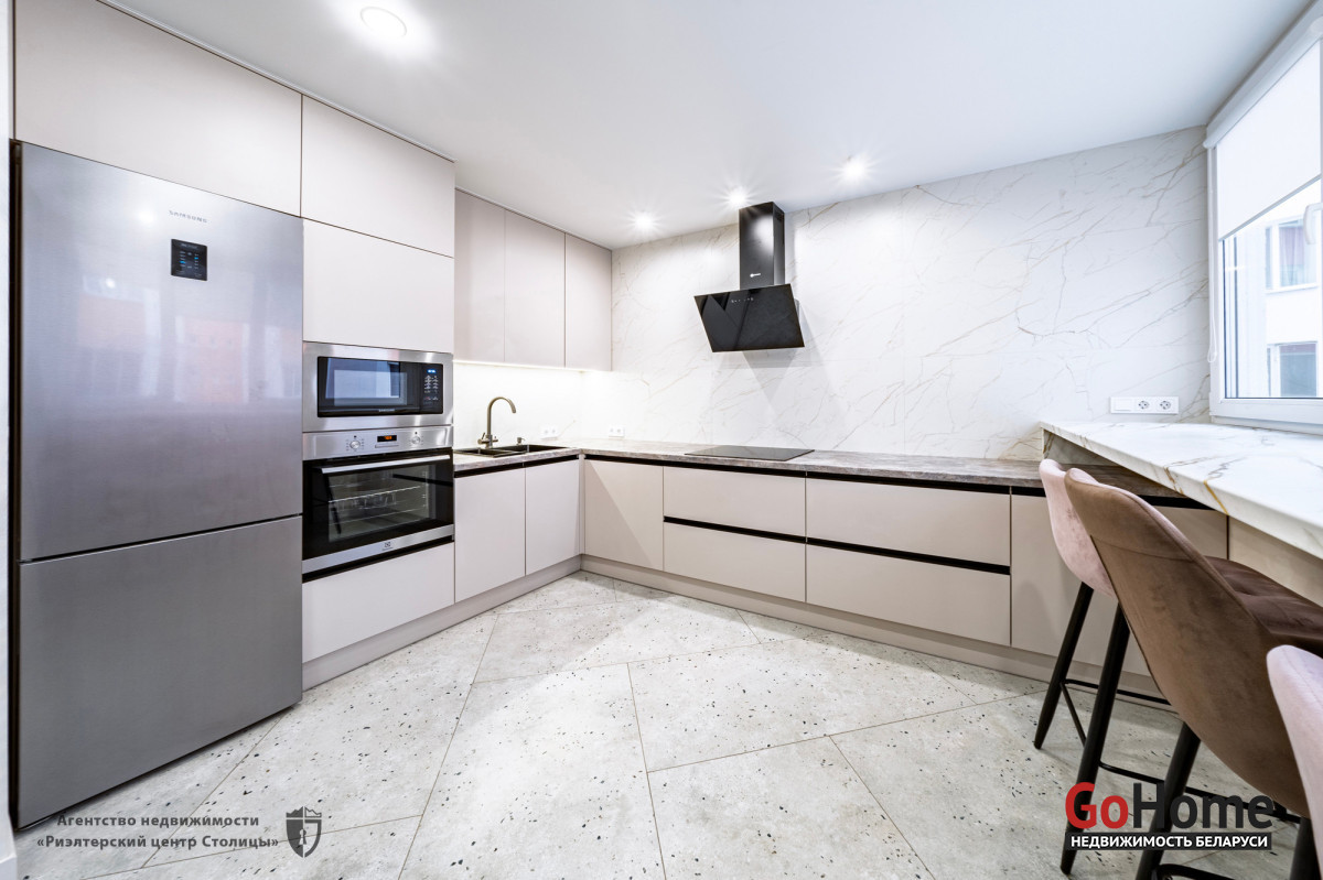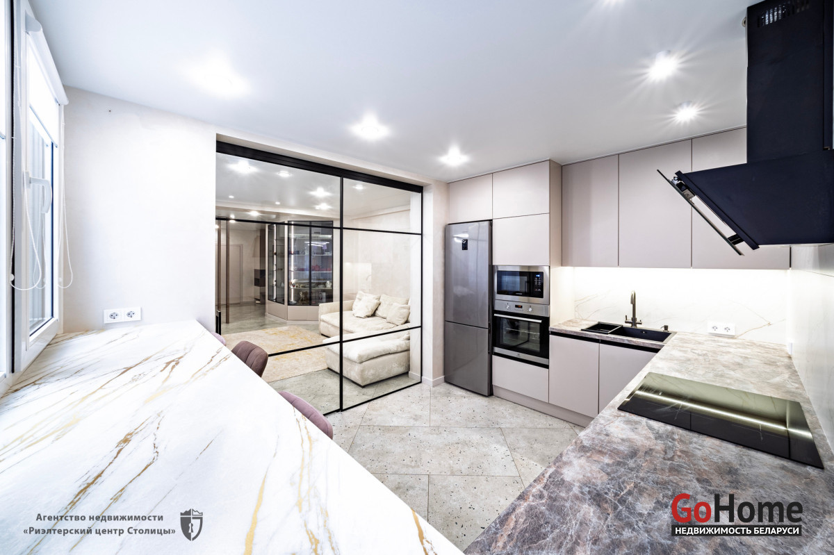 · Кухня: Встроенная кухонная мебель и техника от ведущих европейских брендов (варочная панель, духовой шкаф, вытяжка, посудомоечная машина).
