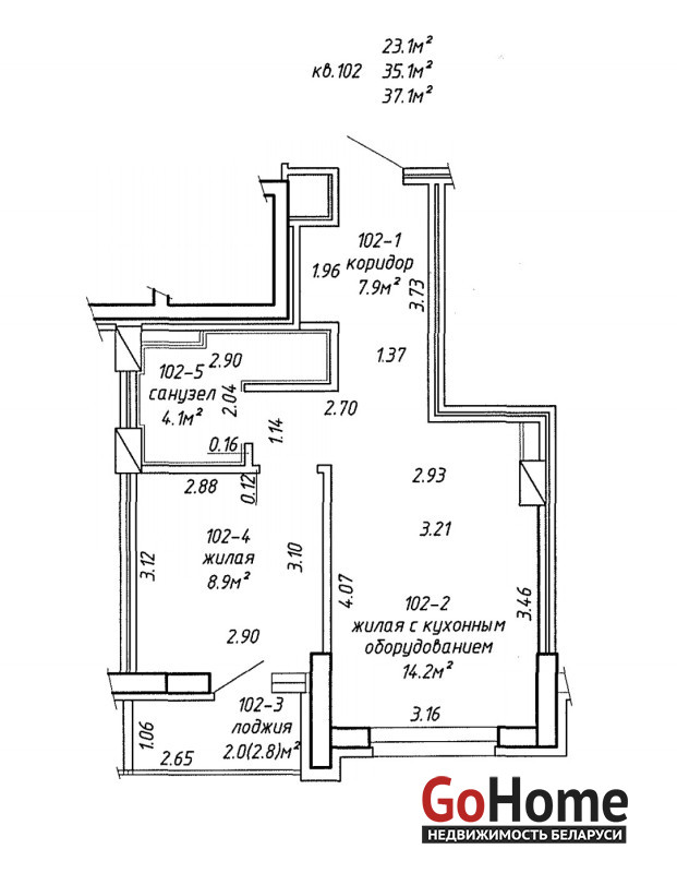 Квартира расположена на 9 этаже 25ти этажного дома. Общая площадь - 37.1 кв. м