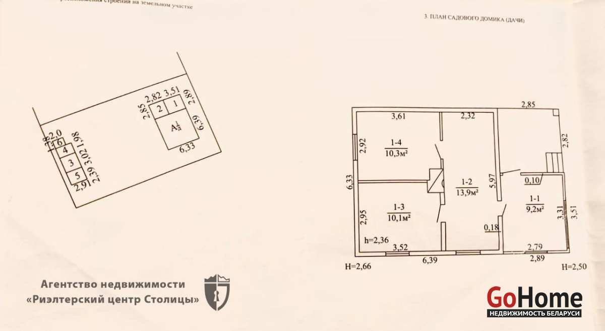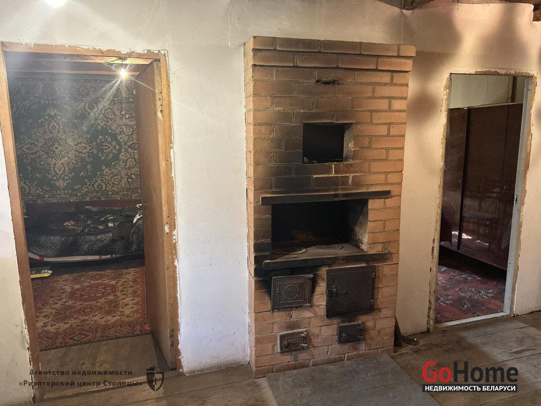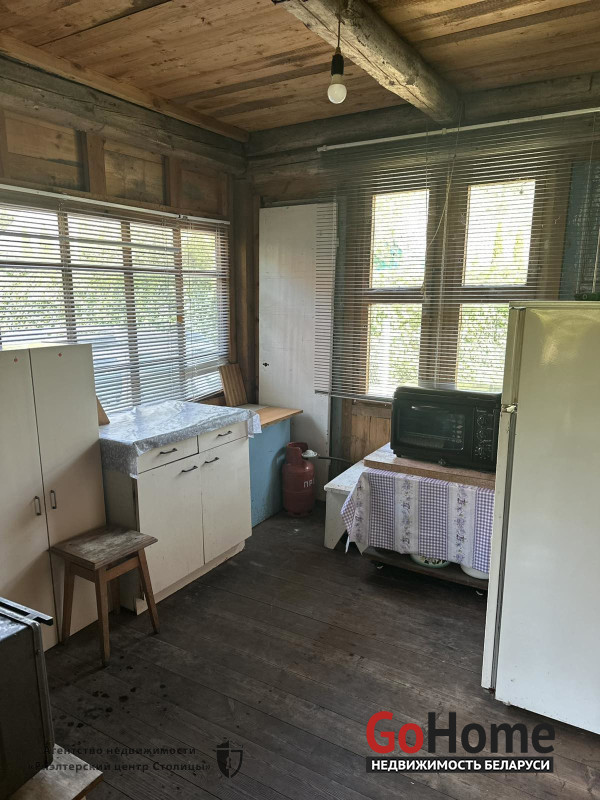 - На участке построен одноуровневый дом общей площадью 43.5 кв.м, 2010 г.п., 3 жилые комнаты, веранда, кухня. Пол - деревянный, окна деревянные, входная и межкомнатные двери деревянные. Крыша шифер. Дом крайний.
