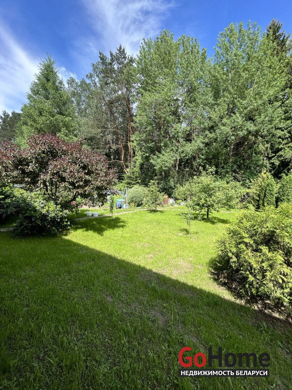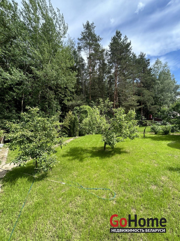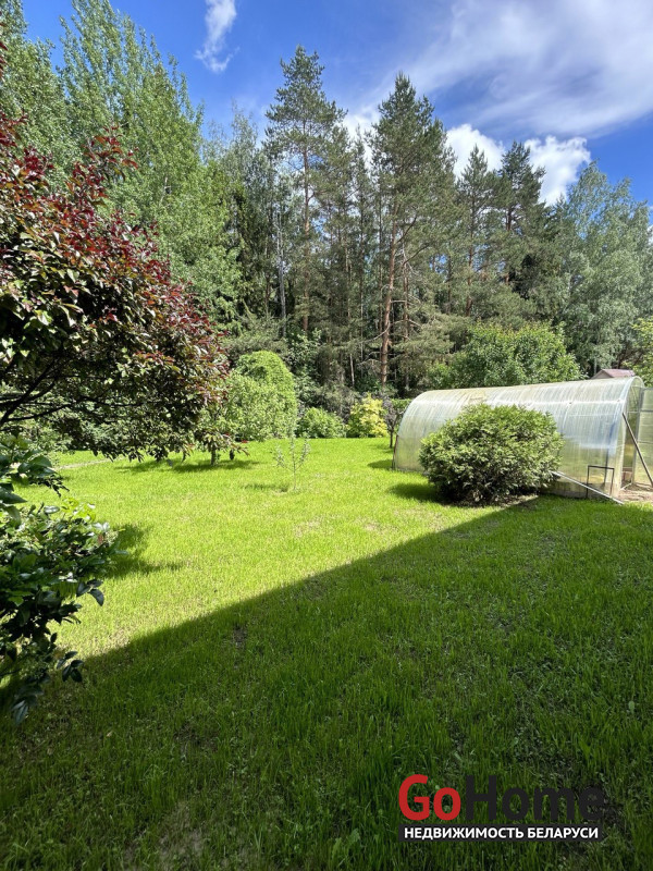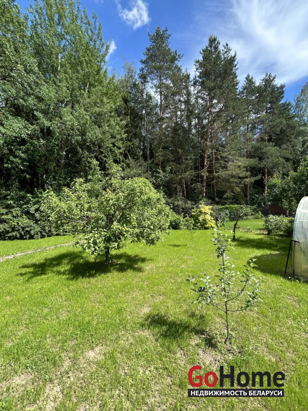 Участок 10 соток примыкает к лесу.Газон, много плодовых деревьев, кустарников. Имеется небольшая теплица из поликарбоната и зона для посадки овощей за домом. Также на участке возведена двухуровневая баня из деревянного сруба 6*6, на первом этаже есть русская печь.